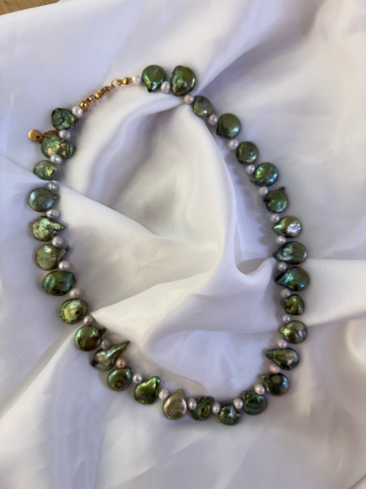 Κολιέ με αληθινά μαργαριτάρια σε πράσινο χρώμα✨