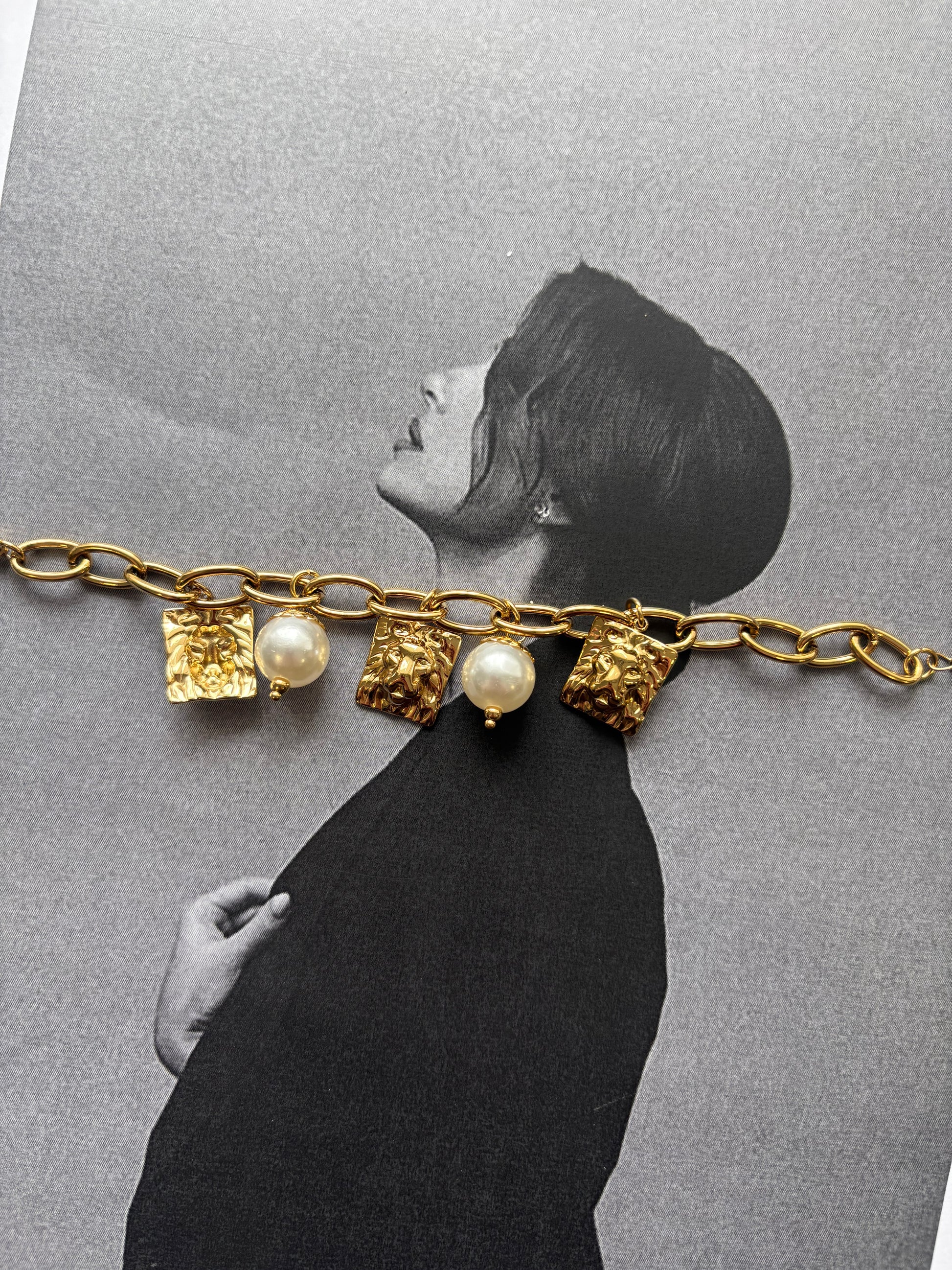 Ένα βραχιόλι που συνδυάζει κομψότητα και χαρακτήρα με έναν μοναδικό τρόπο. Το Golden Muse Bracelet ενώνει τη δυναμική της chunky αλυσίδας με την κομψότητα των περλών και τα ανάγλυφα charms, δημιουργώντας ένα κόσμημα γεμάτο κίνηση και προσωπικότητα.