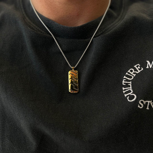 Ανδρικό Κολιέ Ορθογώνιο Χρυσό με Ανάγλυφο Σχέδιο - Pnoe Studio