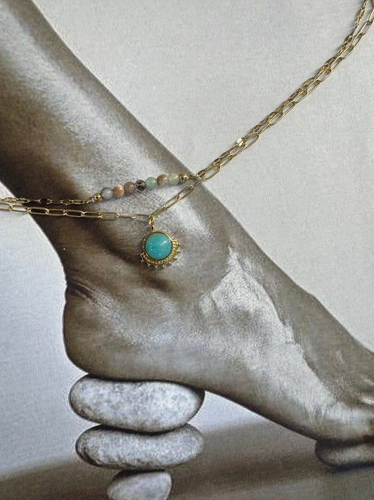Αλυσίδα Ποδιού “Lunara” – Χρυσή Αλυσίδα με Φεγγαρόπετρα