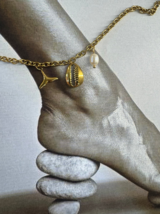 Αλυσίδα Ποδιού “Thalassa” – Mermaid Tail, Κοχύλι & Πέρλα