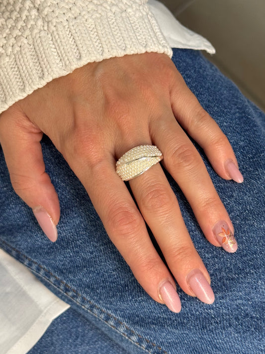 Silver Pearlwave-δαχτυλίδι stainless steel