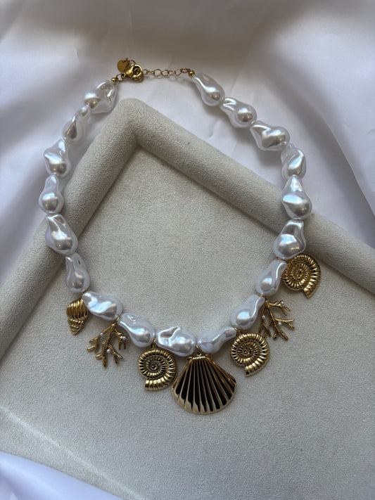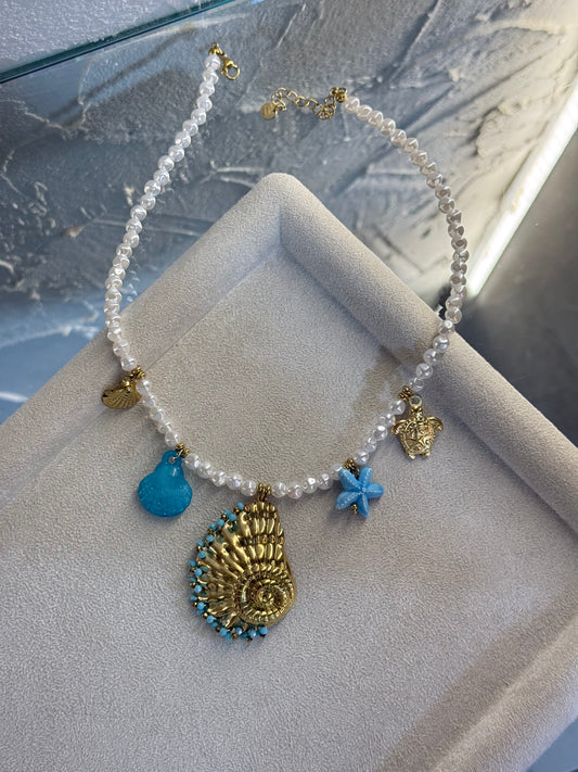 Κολιέ Ariel με χρυσά charms & πέρλες - Δικής μας παραγωγής | Pnoe Studio