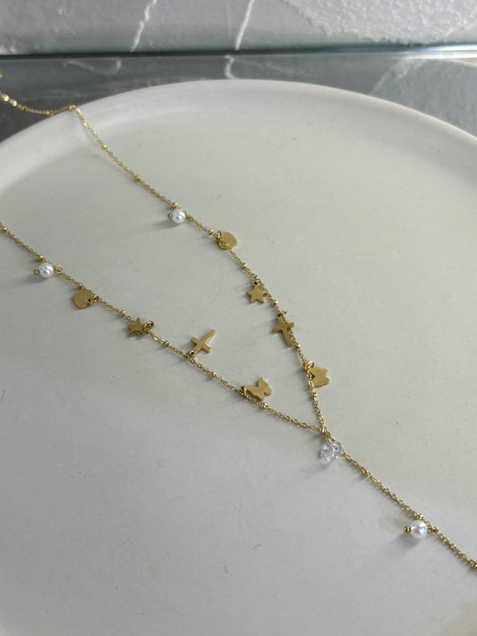✨Stela’s Κολιέ ατσάλινο μακρύ με διάφορα σύμβολα σε χρυσό 🤎