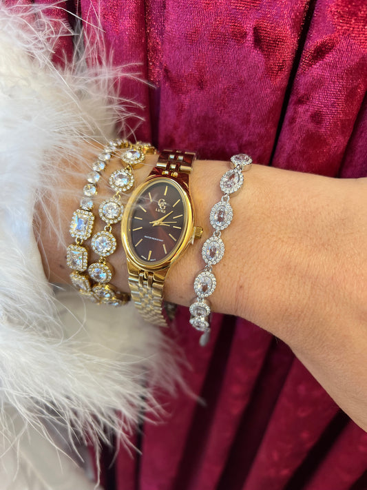 «Prestige» - ατσάλινο χρυσό ρολόι με πράσινο καντράν