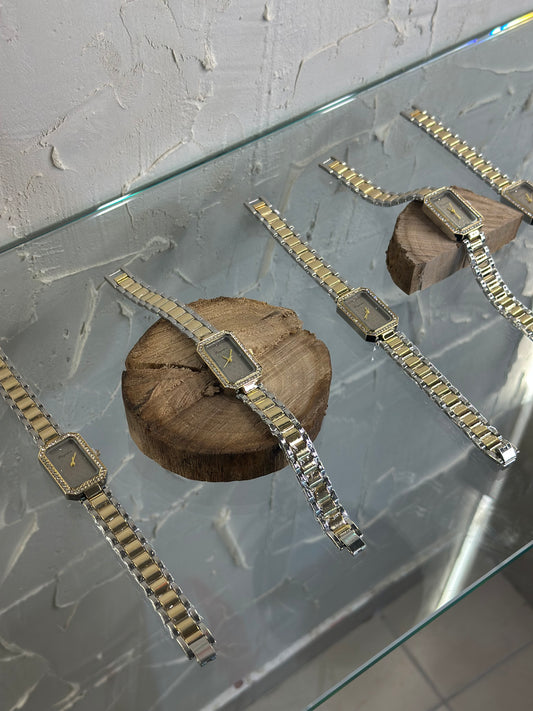 Γυναικείο Ρολόι με Τετράγωνο λευκο Καντράν και Χρυσό-Ασημί Λουρί | Κομψότητα & Στυλ