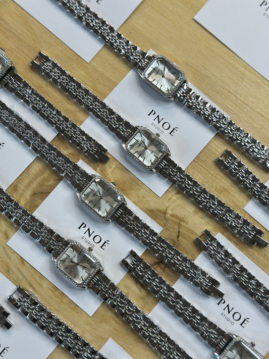 Γυναικείο Ρολόι με Τετράγωνο Ασημί Καντράν και Ασημί Λουρί | Κλασική Κομψότητα