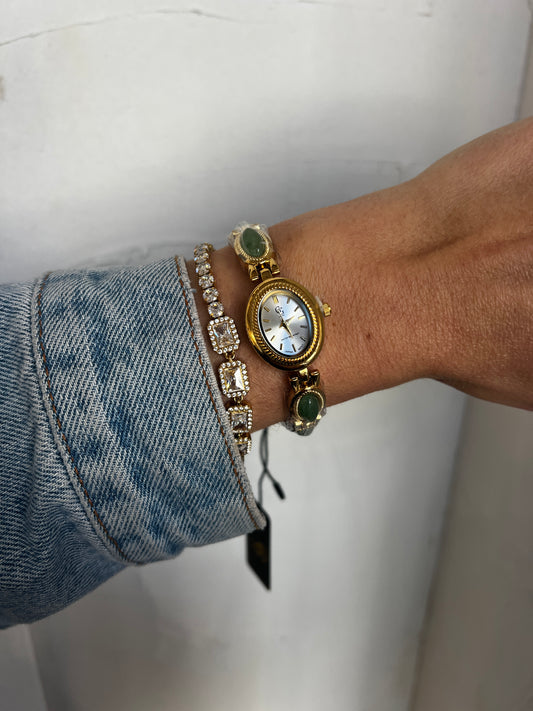“Emerald Elegance in Silver” Ατσάλινο ρολόι