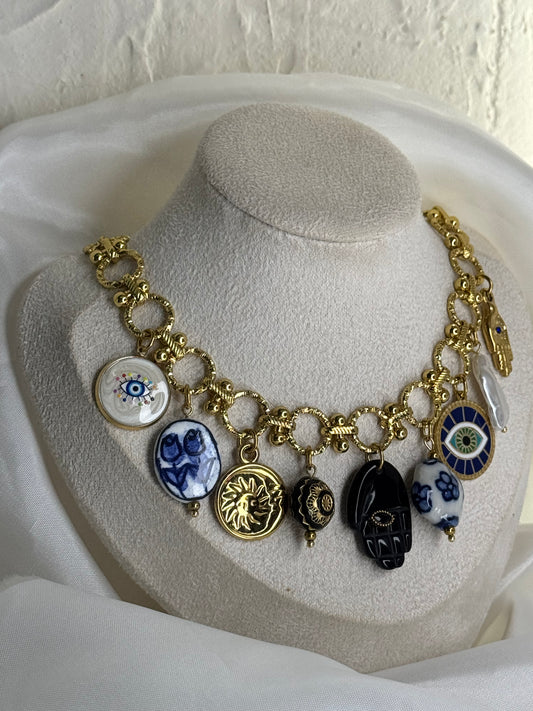 Bohemian Charm — Κολιέ με φουλάρι και χρυσά στοιχεία