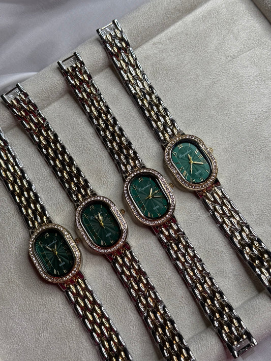 Green Passion / Οβάλ Ατσάλινο Ρολοί Χρυσό Με Ασημί ✨