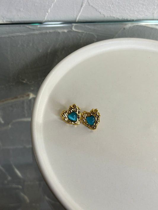 Σκουλαρίκι ατσάλινο σε σχήμα καρδιάς με μπλε πετράδι