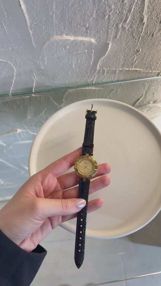 Golden Era / Vintage Ρολοί Με Μαύρο Λουρί Και Χρυσές Λεπτομέρειες ✨