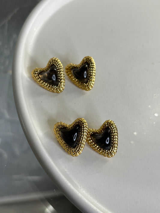 Ατσάλινα σκουλαρίκια,χρυσά ασημί με διπλό σχέδιο καρδιά