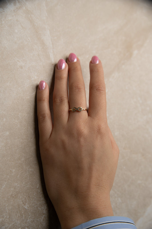 Λεπτό Δαχτυλίδι με Διπλή Πέτρα σε Χρυσό και Ασημί Χρώμα | Κομψό και Διακριτικό