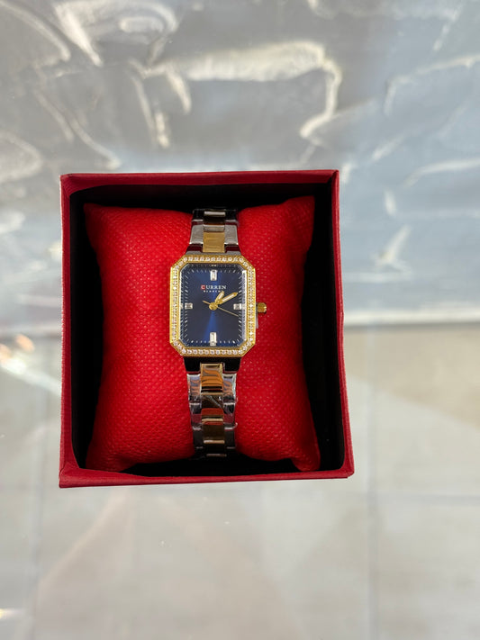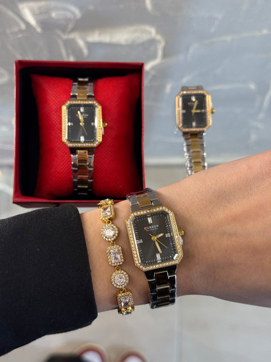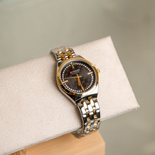 Γυναικείο Ρολόι Curren με Δίχρωμο Μεταλλικό Μπρασελέ & Μαύρο Καντράν με Στρας | Κομψό & Μοντέρνο