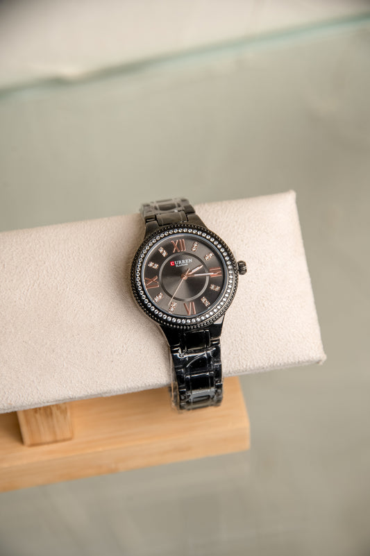 Γυναικείο Ρολόι Curren με Μαύρο Μπρασελέ & Μαύρο Καντράν με Στρας