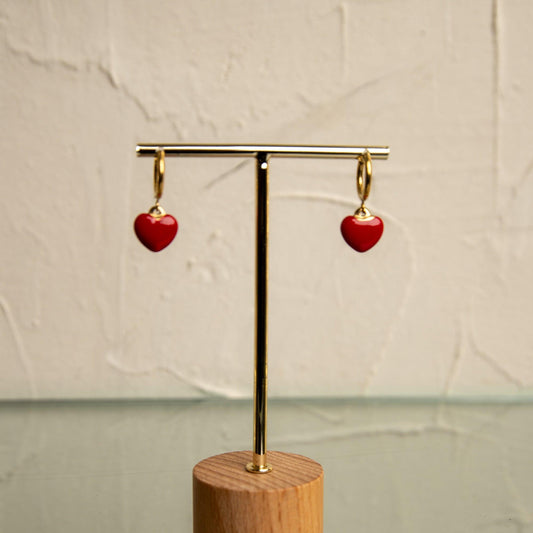 Γυναικεία Χρυσά Κρεμαστά Σκουλαρίκια με Κόκκινη Καρδιά | Ρομαντικά & Στυλάτα