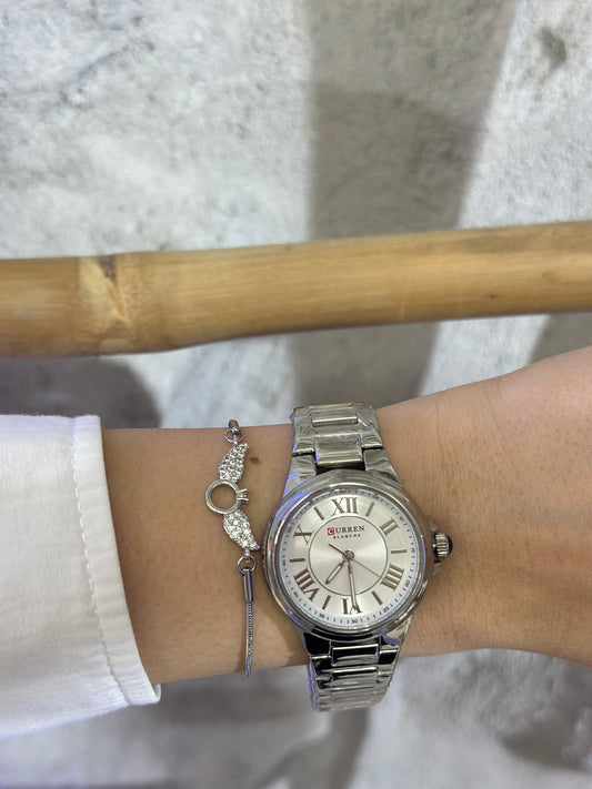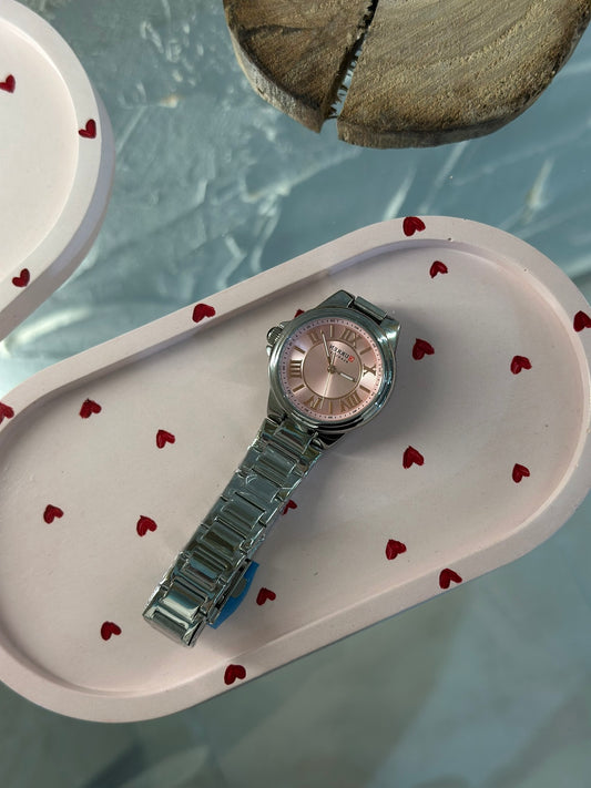 Ρολόι "Silver love" με Άσπρο Στρογγυλό Καντράν και Αρημί Λουρί Ατσάλινη Κατασκευή