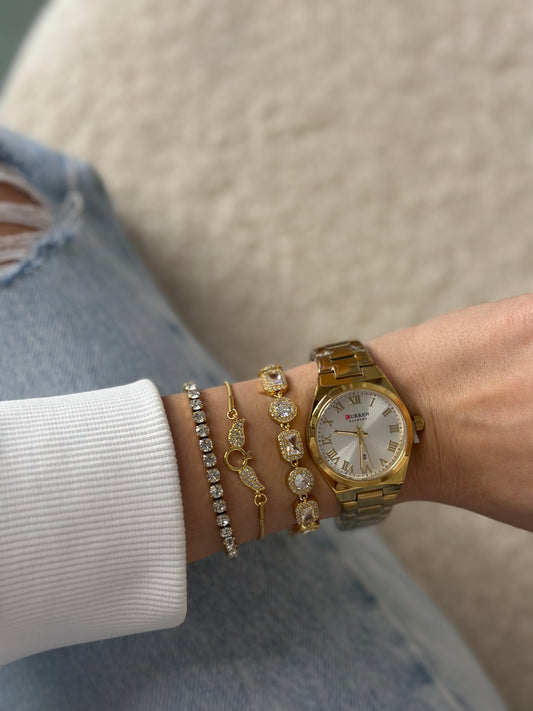Γυναικείο Ρολόι με Στρογγυλό Άσπρο Καντράν και Χρυσό Λουρί | Κομψότητα και Αντοχή