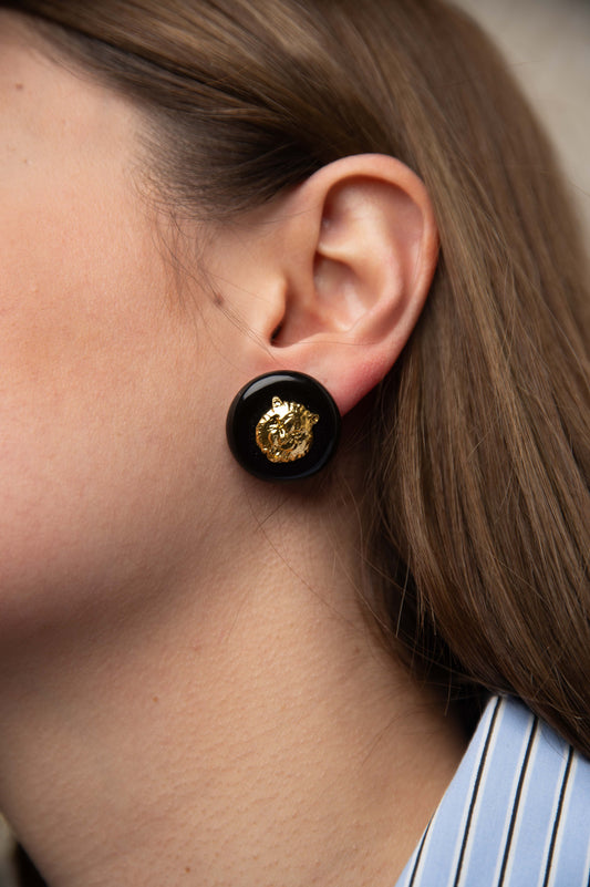 Γυναικεία Σκουλαρίκια Μαύρα με Χρυσό Λιοντάρι | Δύναμη & Κομψότητα