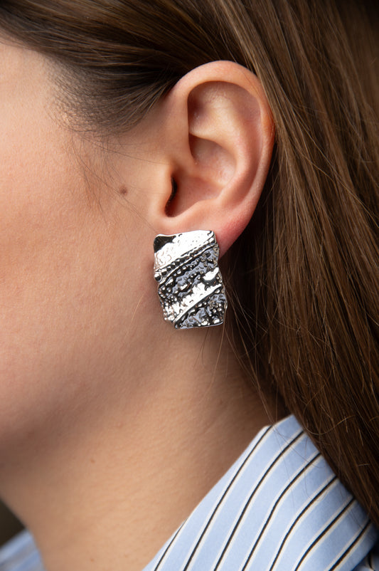 Γυναικεία Ασημί Σκουλαρίκια Statement με Ανάγλυφο Σχέδιο | Κομψότητα & Μοντέρνο Στυλ