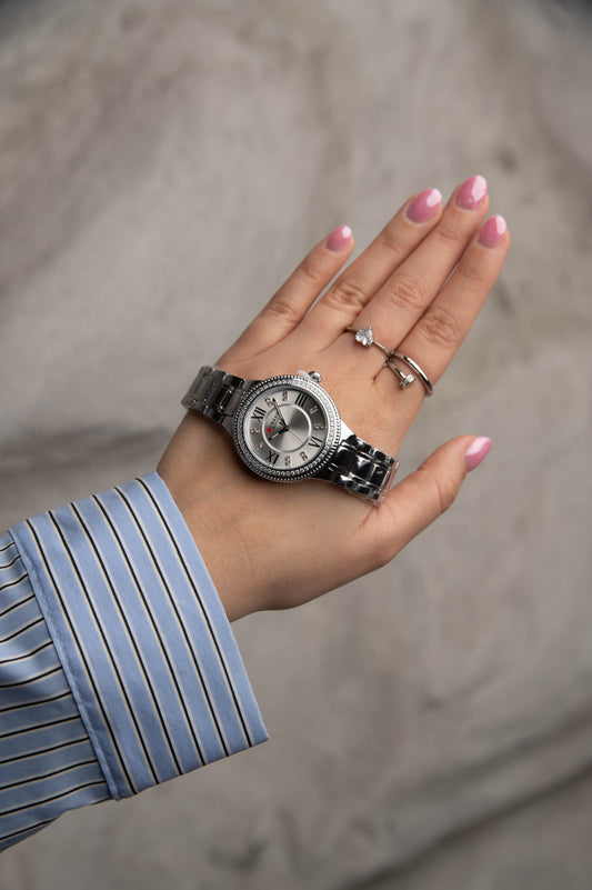 Γυναικείο Ρολόι με Ασημί Στρογγυλό Καντράν και Ασημί Λουρί | Κομψότητα και Στυλ