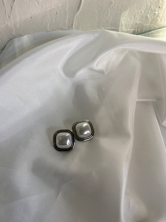 Σκουλαρίκι ατσάλινο με κλιπ τετράγωνο ασημί