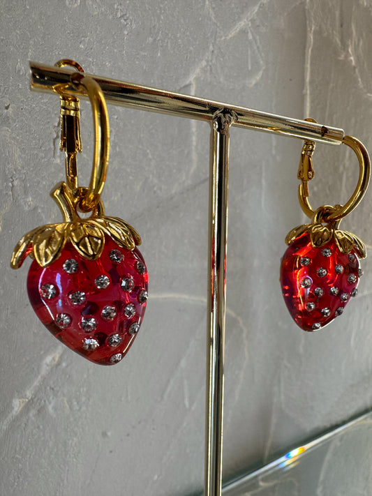 Σκουλαρίκια “Strawbellina” Φράουλα με Στρας – Pnoe Studio