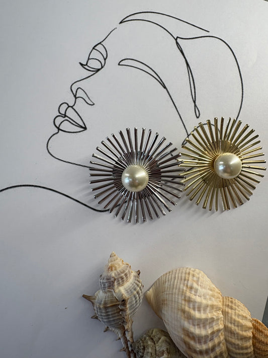 Σκουλαρίκια “Solaré” Ήλιος με Πέρλα – Gold ή Silver – Pnoe Studio