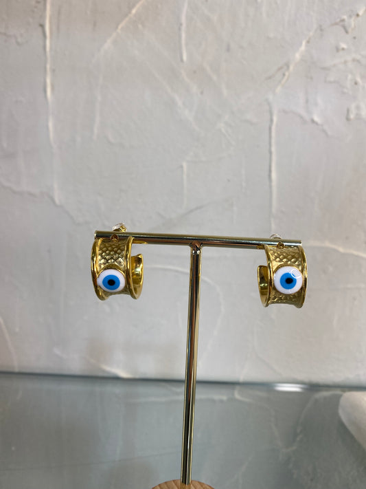 Σκουλαρίκια Μανσέτα "Genie" – Ατσάλινα Χρυσά με Μάτι, Pnoe Studio