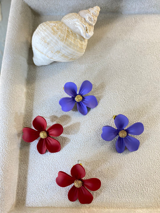 Σκουλαρίκια Λουλούδι "Belle & Ariel" – Ατσάλινα, Κόκκινο ή Μωβ, Pnoe Studio
