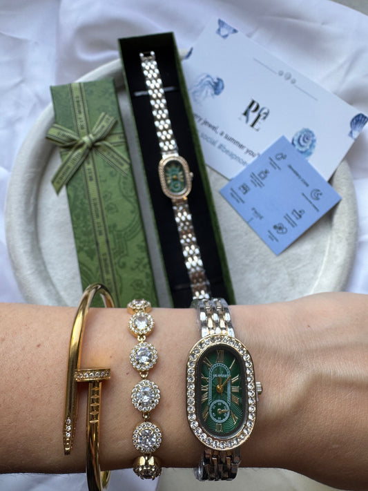 Γυναικείο Ρολόι με Πράσινο Καντράν και Χρυσό Λουρί | Κομψότητα & Πολυτέλεια ανθεκτική κατασκευή