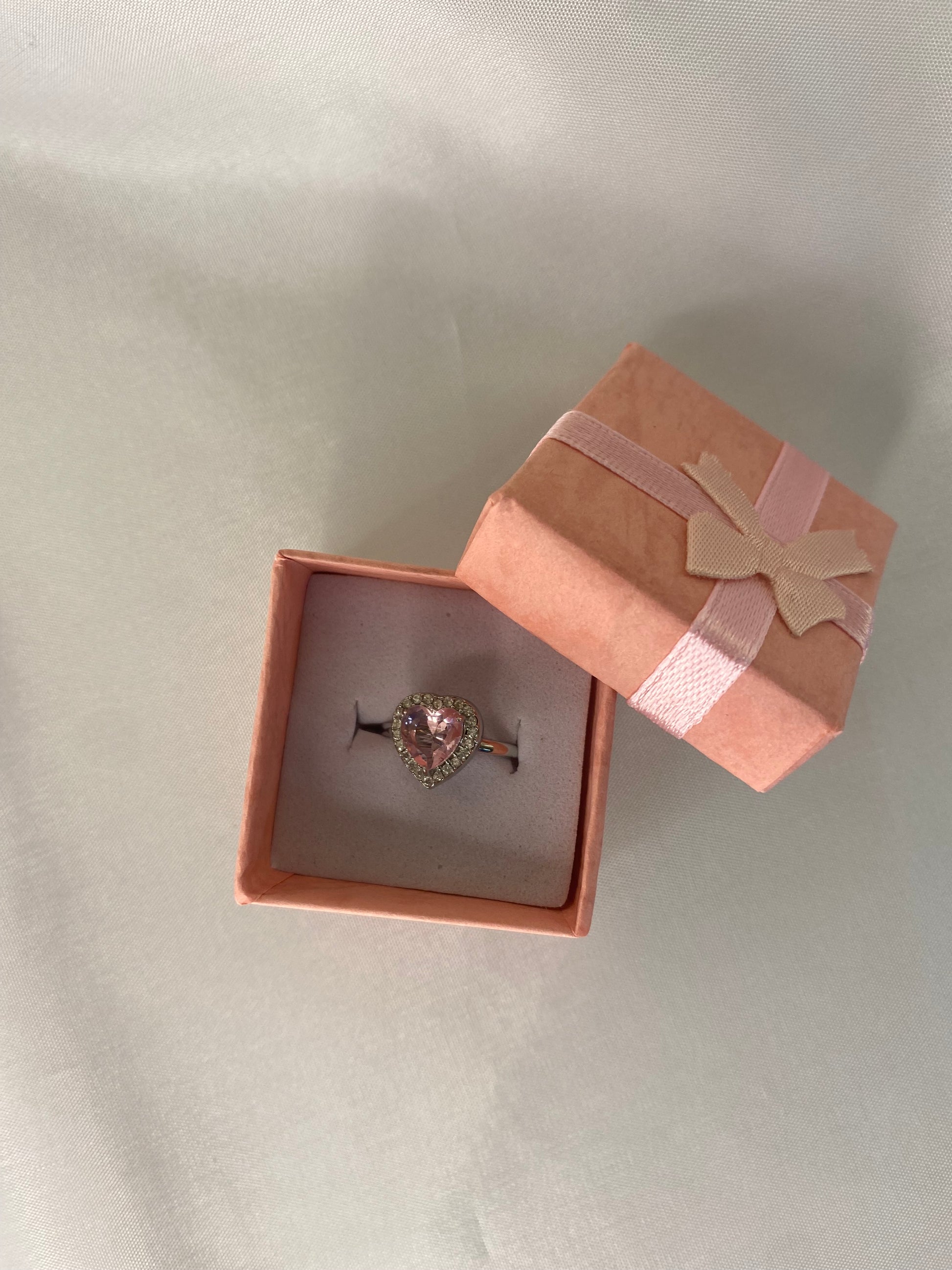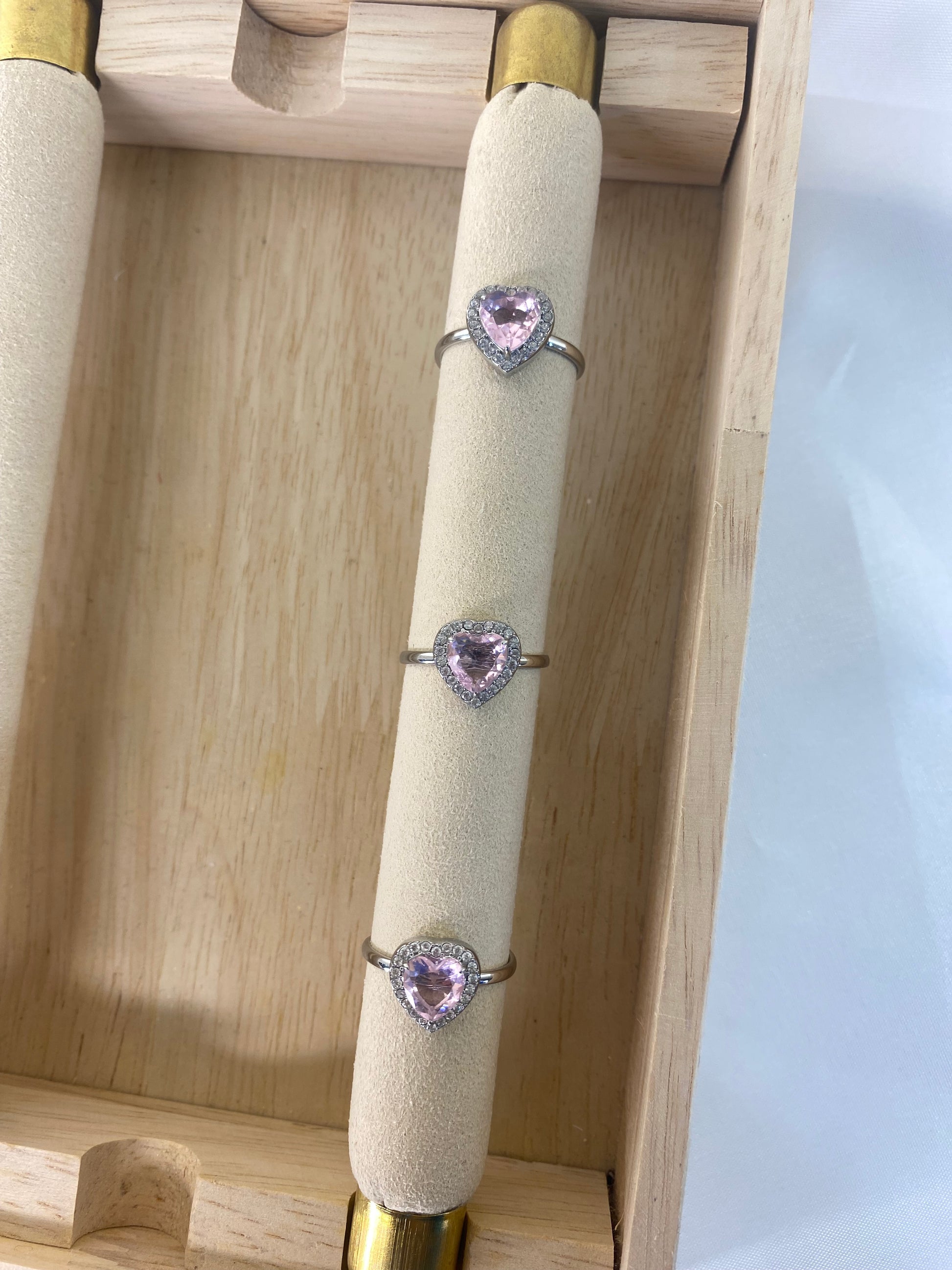 Ασημένιο δαχτυλίδι με σχέδιο καρδιά και ροζ πέτρα-από χαλκό