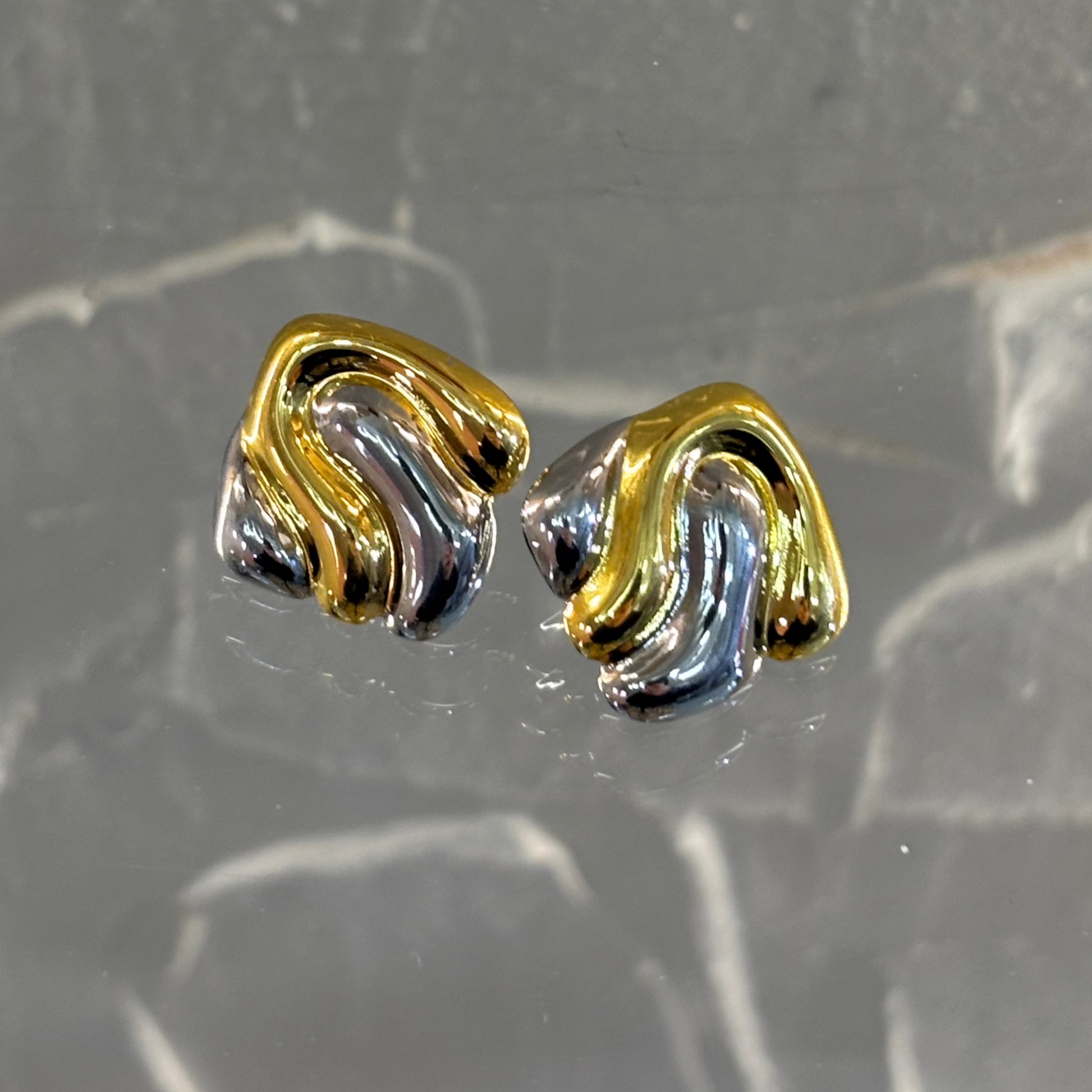 Ατσάλινα Σκουλαρίκια Ακανόνιστου Σχήματος σε Ασημί και Χρυσό Χρώμα με