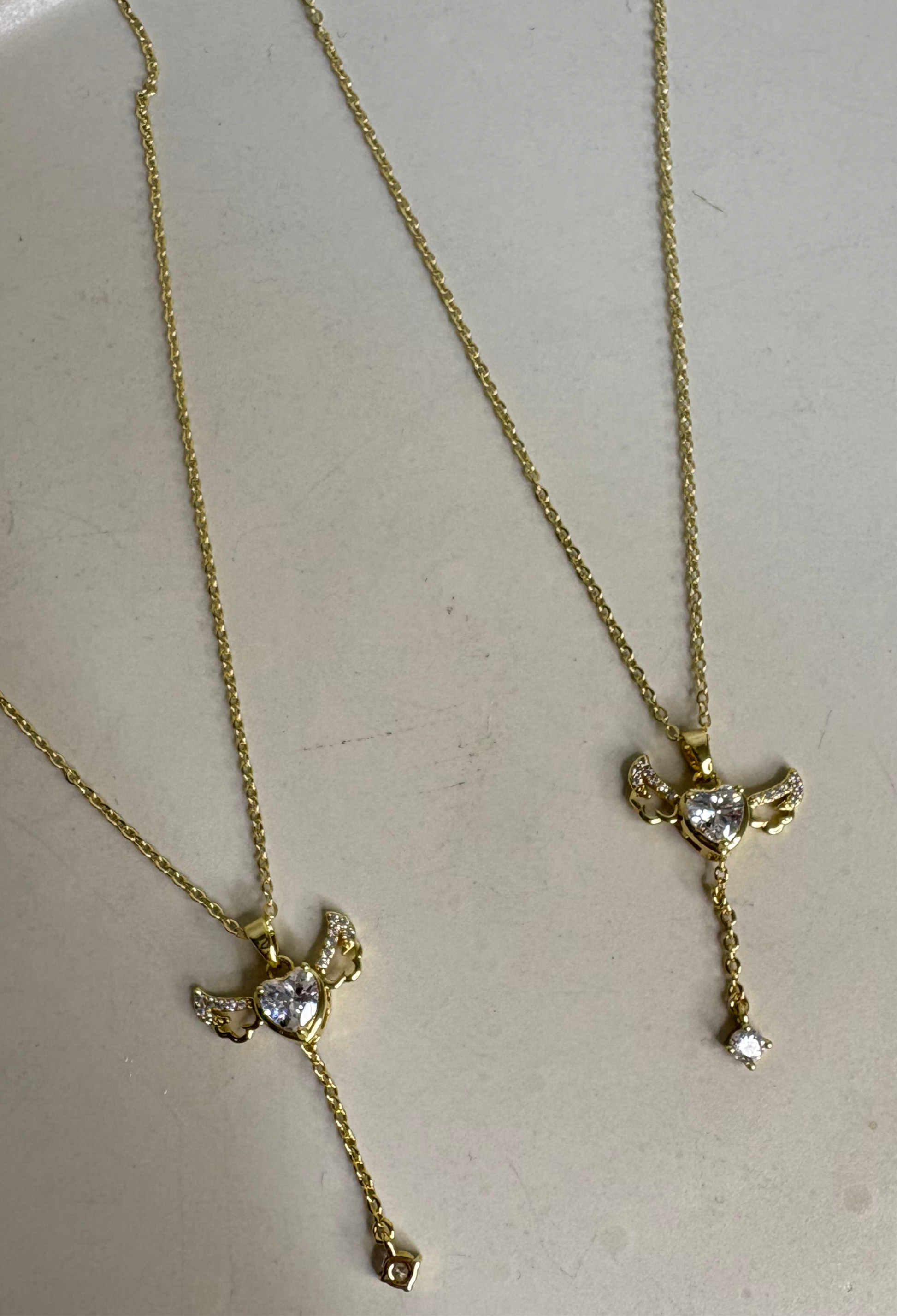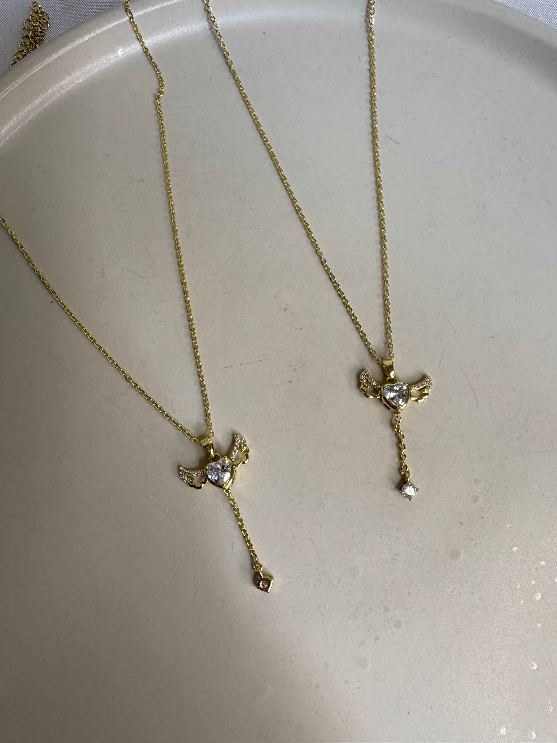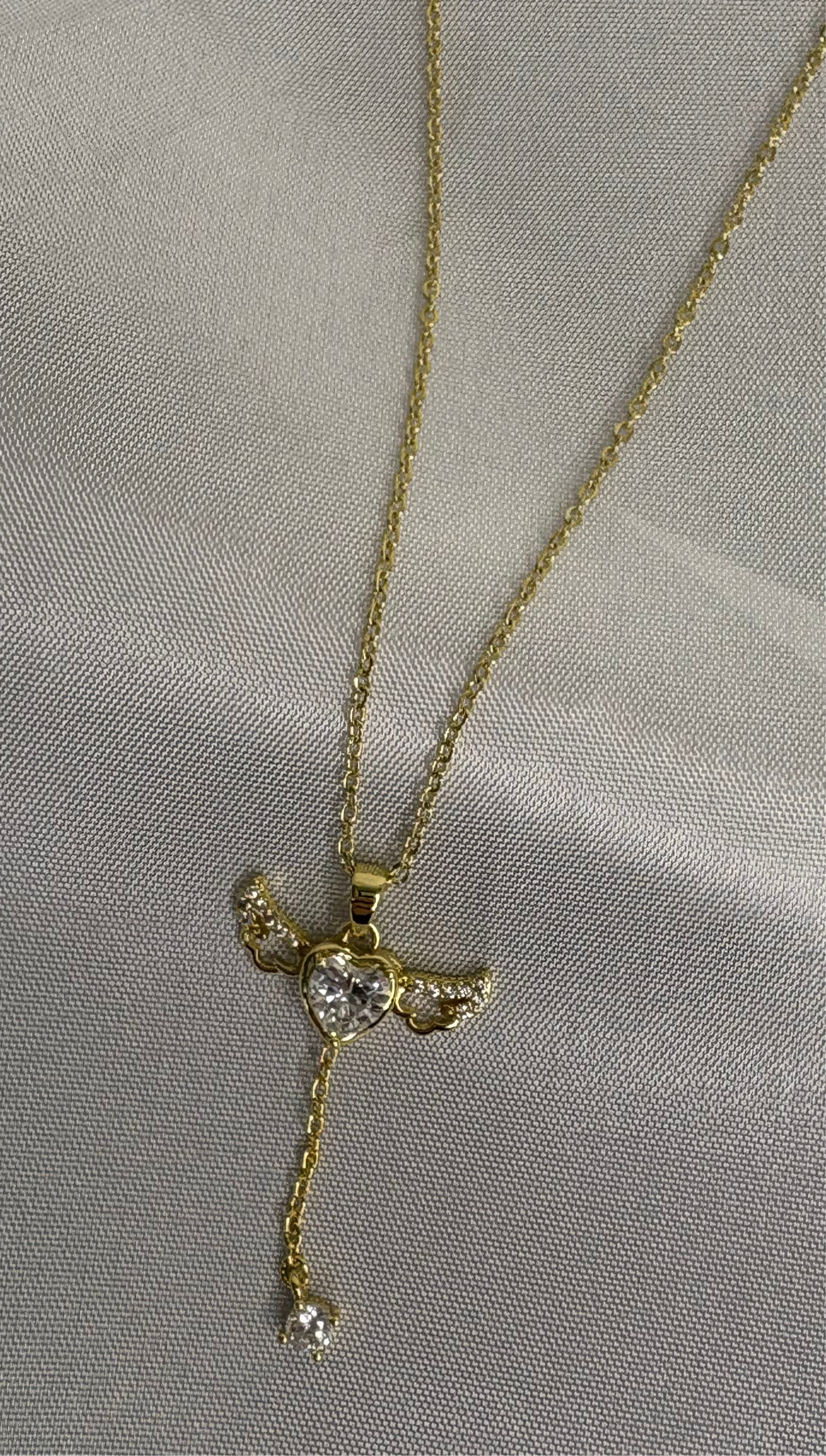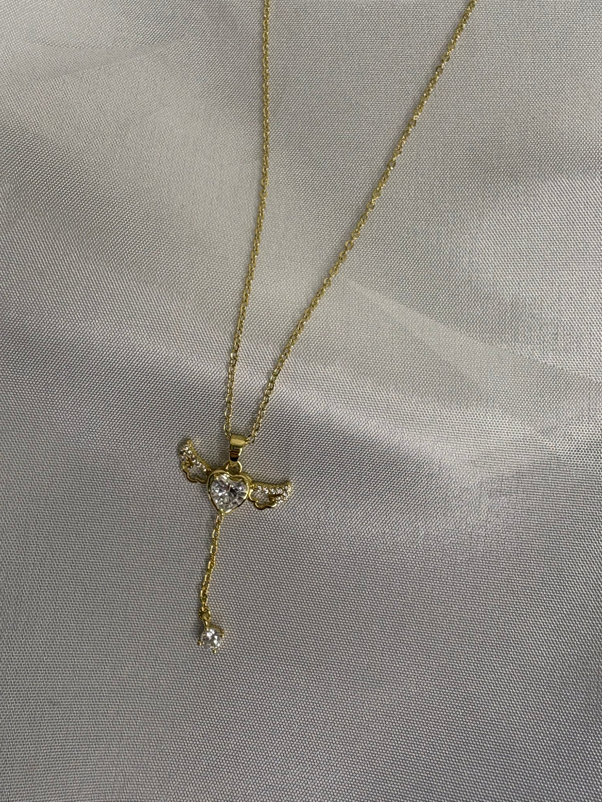 Ατσάλινο κολιέ σε χρυσό χρώμα - καρδιά με φτερά
