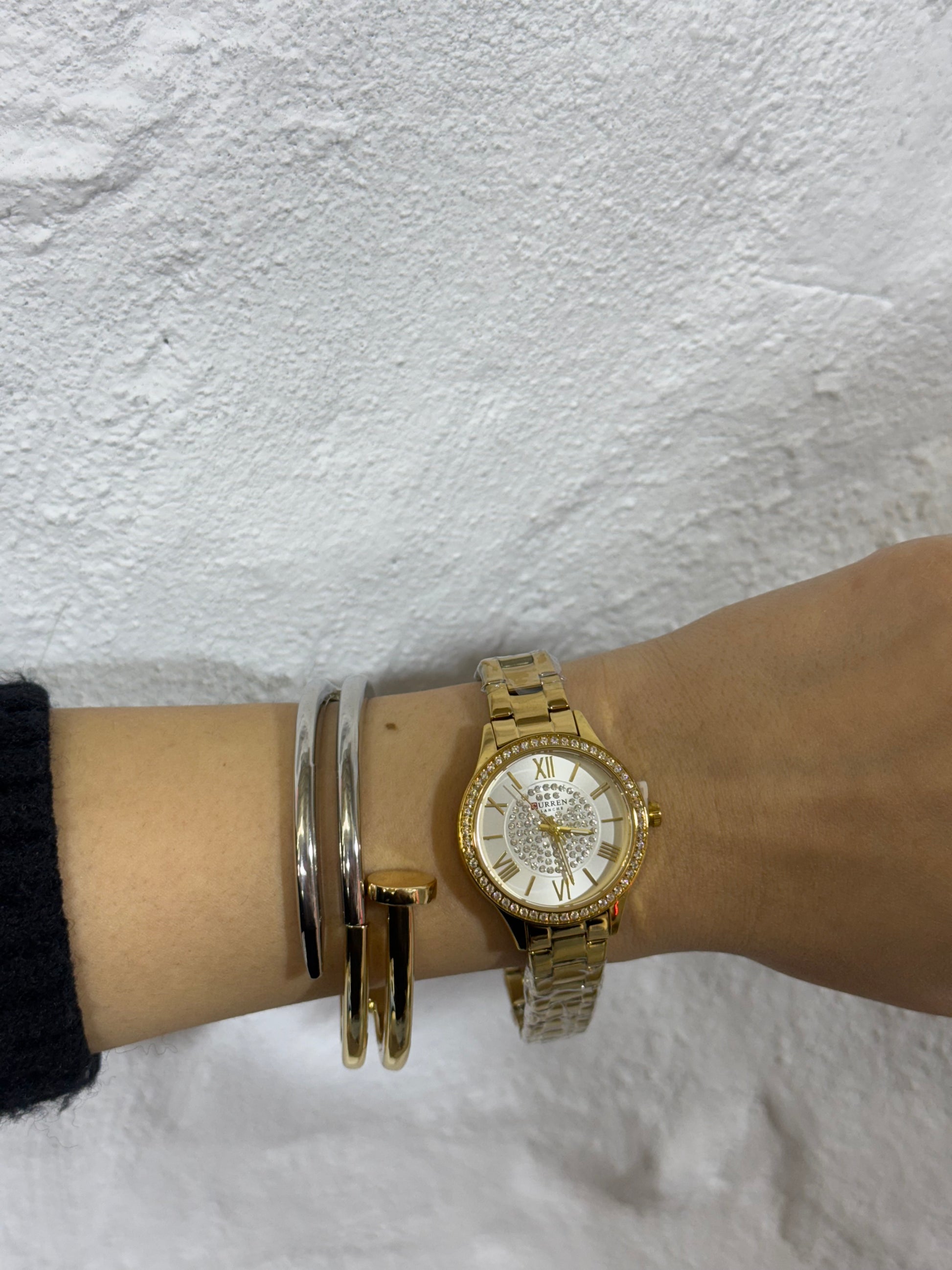 Ατσάλινο Ρολόι Χρυσό Με Στρας ✨