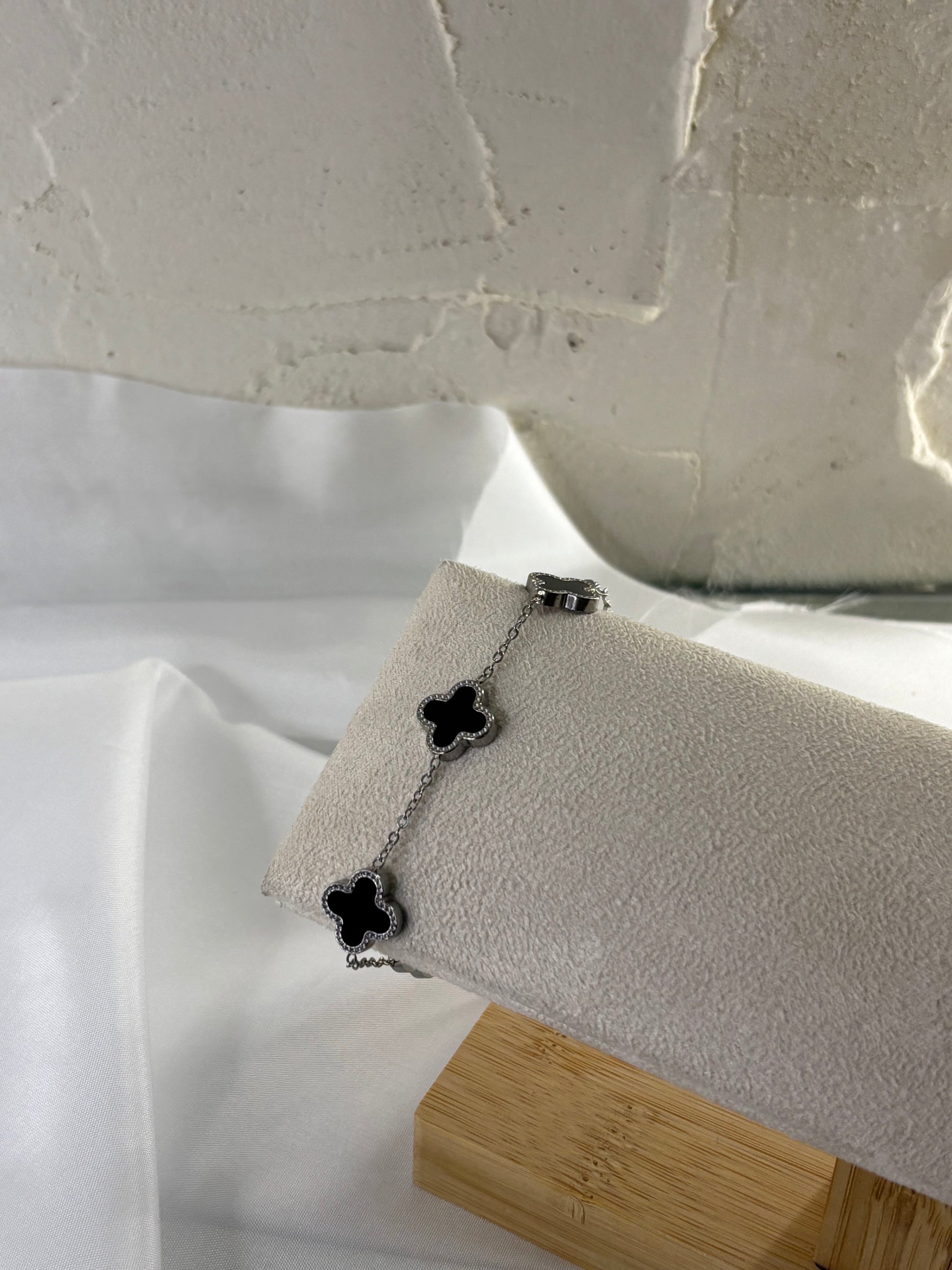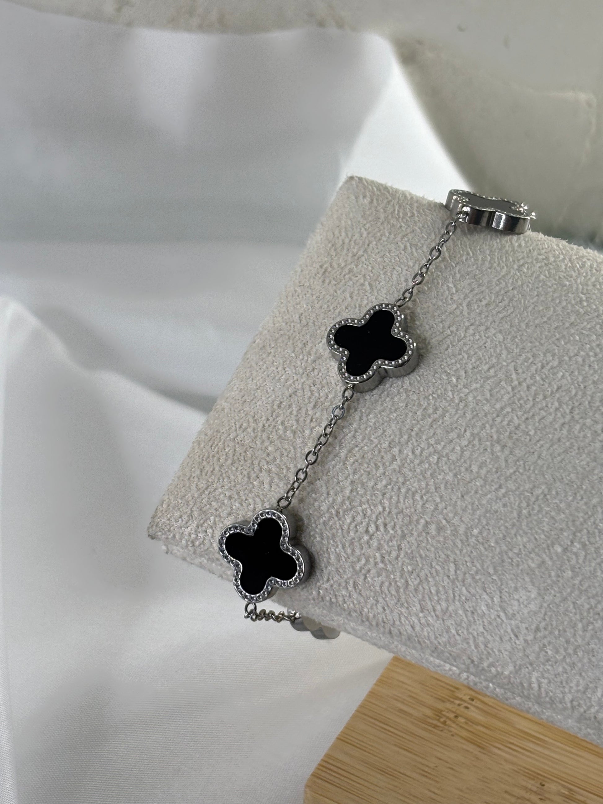 Βραχιόλι ασημένιο ατσάλινο με λουλούδια