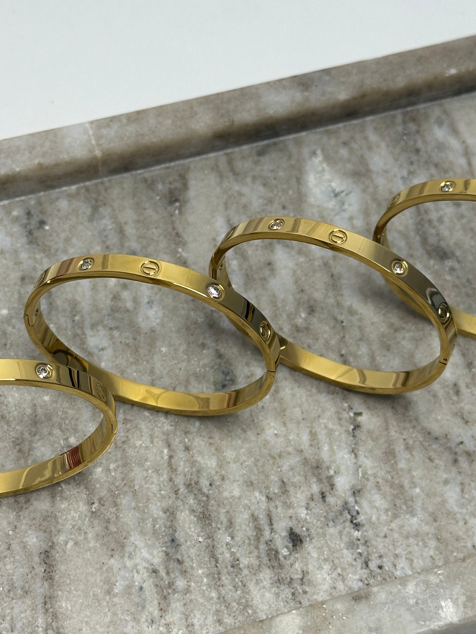 Ανακαλύψτε το βραχιόλι σε χρυσό χρώμα και ατσάλινη κατασκευή, που συνδυάζει κομψότητα και αντοχή για κάθε εμφάνιση. Ιδανικό για καθημερινές ή επίσημες περιστάσεις, με μοναδικό σχέδιο που προσδίδει στυλ και λάμψη. Αποκτήστε το σήμερα και ενισχύστε την εμφάνισή σας! ✨
