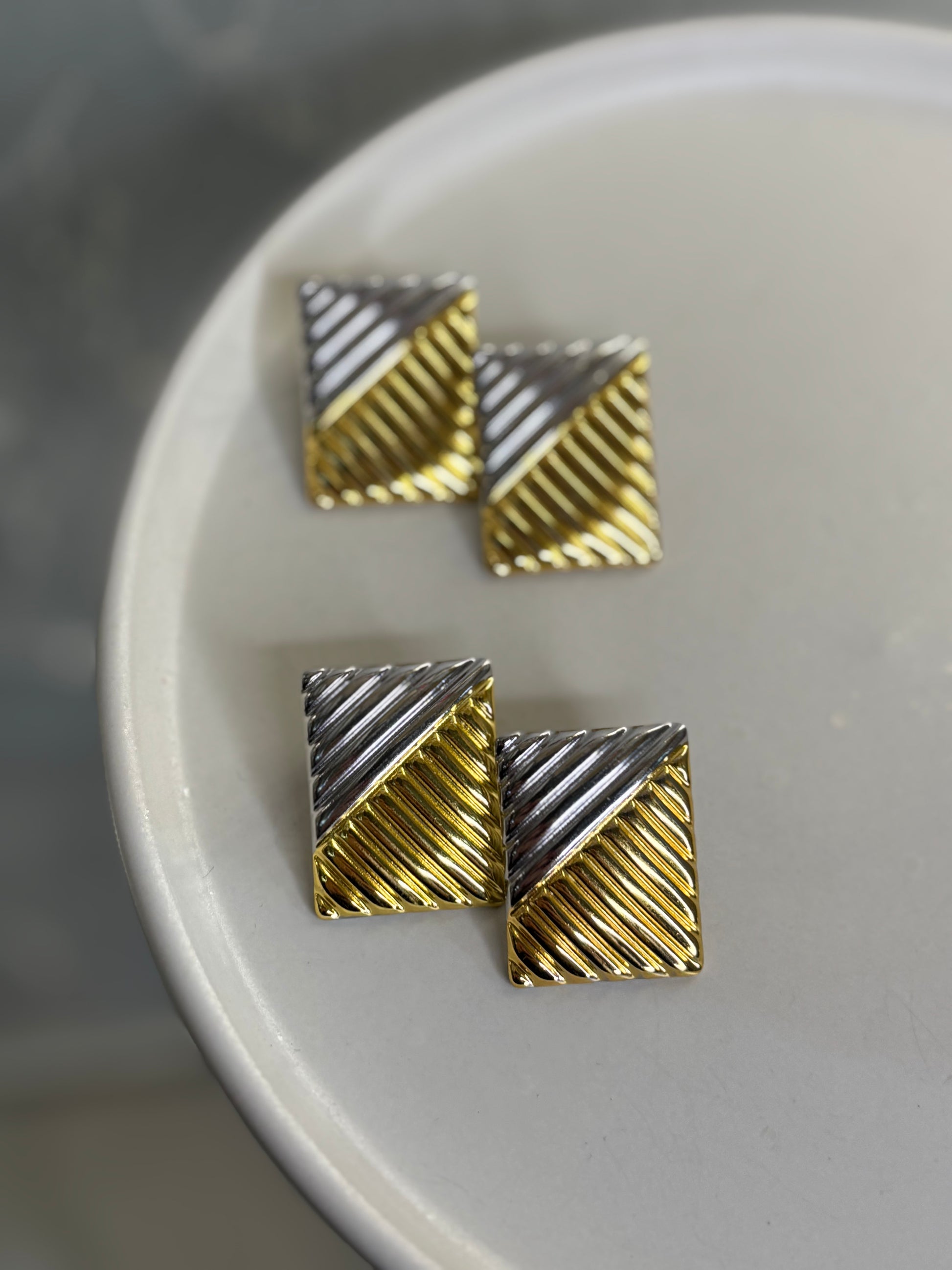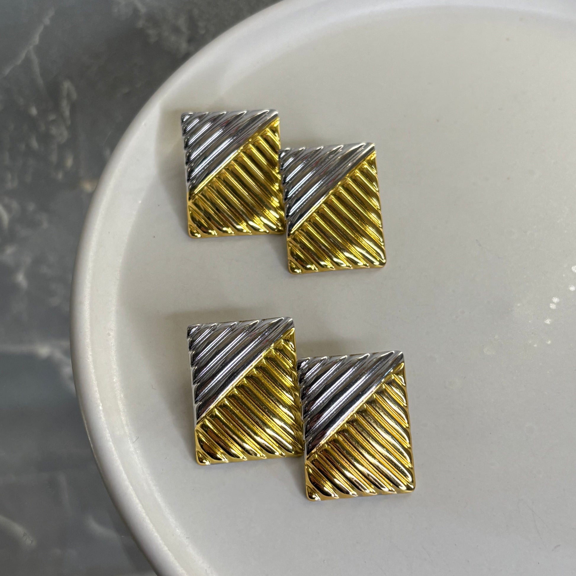 Γυναικεία σκουλαρίκια τετράγωνα mix χρυσό ασημί