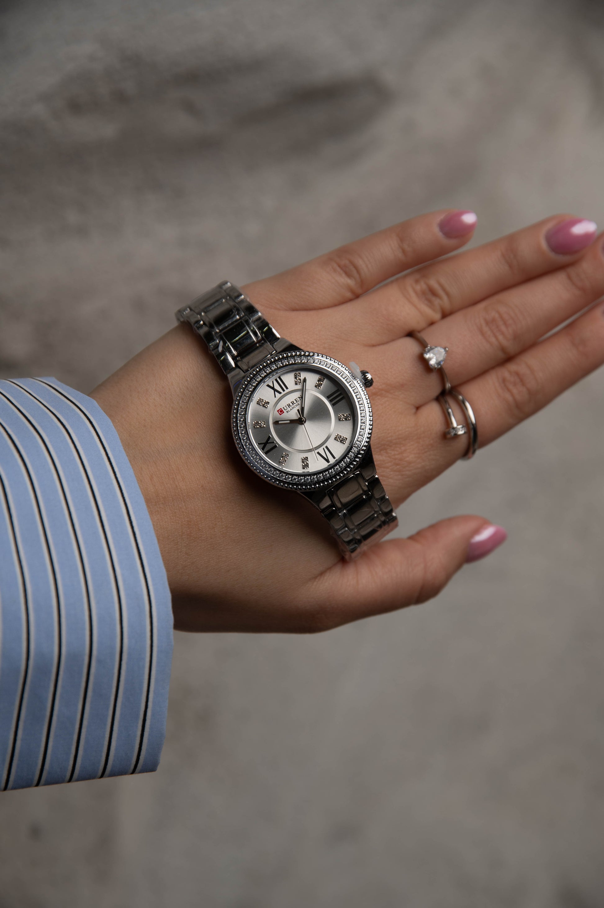 Γυναικείο Ρολόι με Ασημί Στρογγυλό Καντράν και Ασημί Λουρί | Κομψότητα και Στυλ