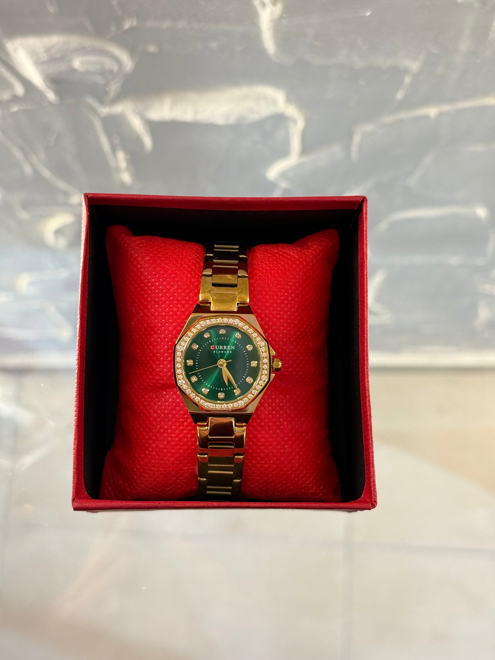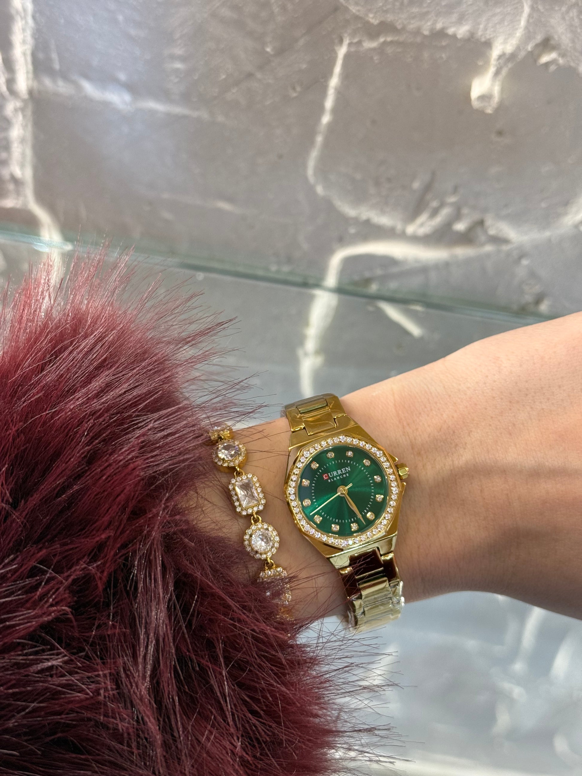 Γυναικείο Ρολόι με Πράσινο Καντράν και Χρυσό Λουρί | Κομψότητα και Αντοχή