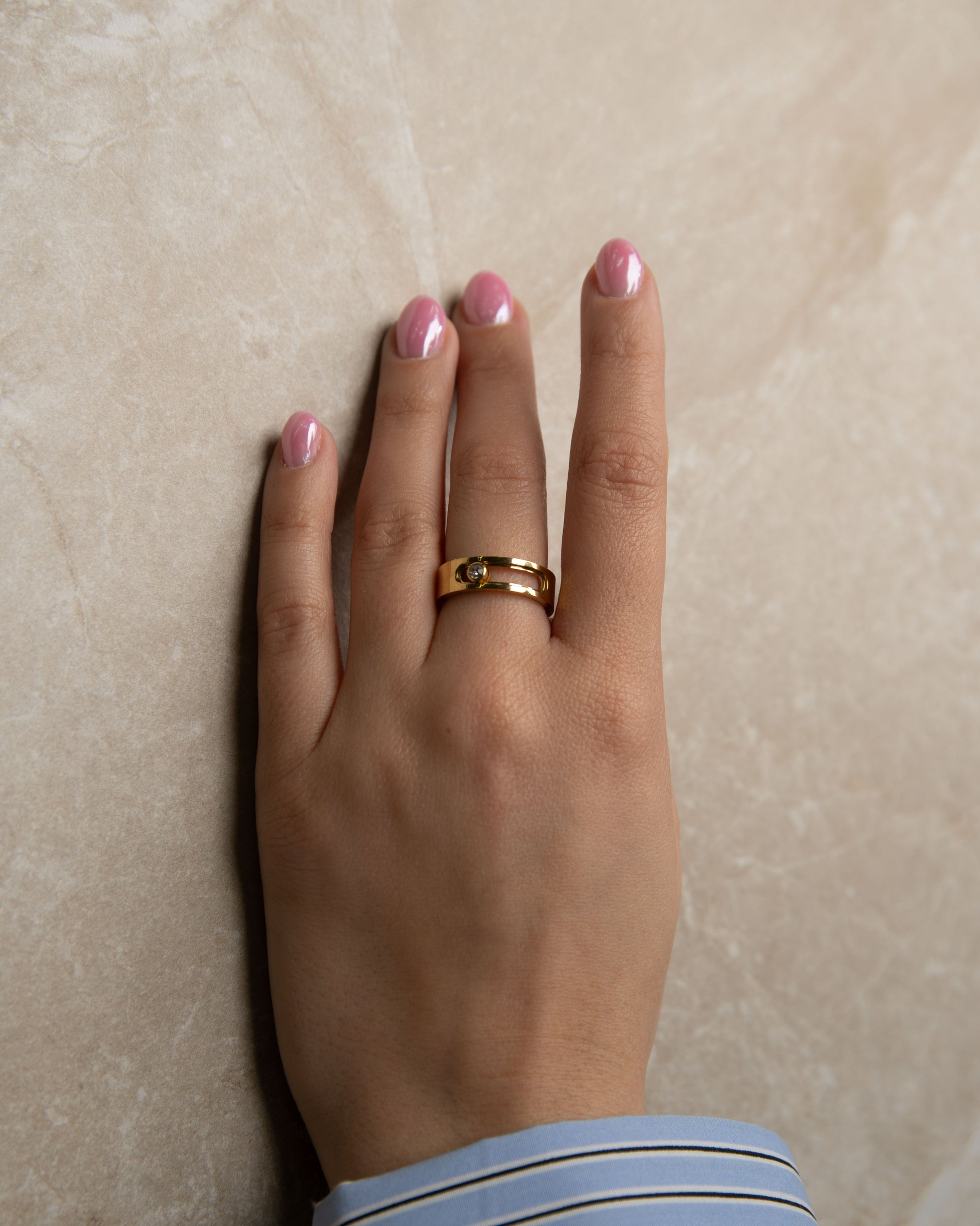 Δαχτυλίδι με Λαμπερή Πέτρα σε Χρυσό και Ασημί Χρώμα | Μοντέρνο και Κομψό