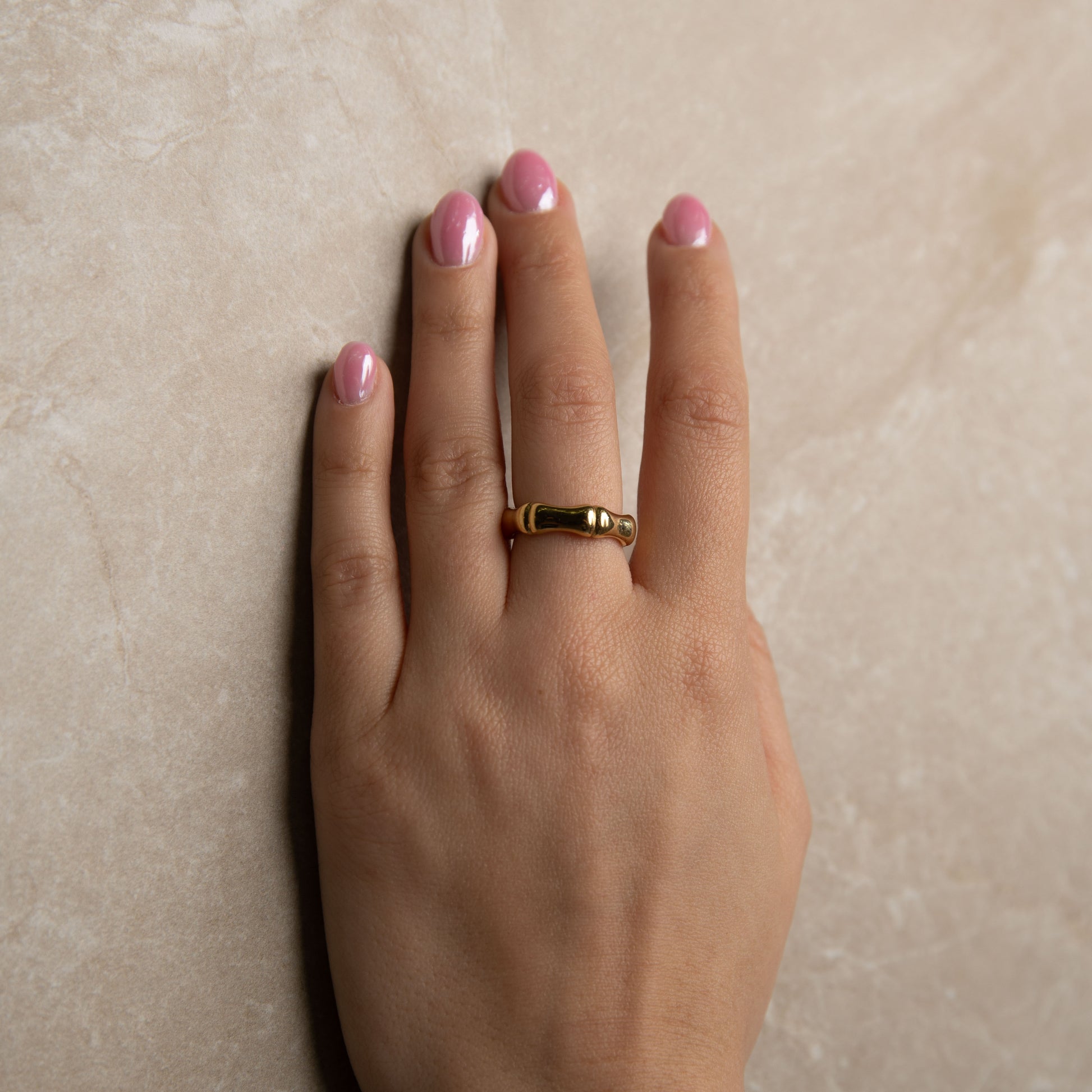 Δαχτυλίδι με Σχέδιο Μπαμπού σε Χρυσό και Ασημί Χρώμα | Μοντέρνο και Φυσικό
