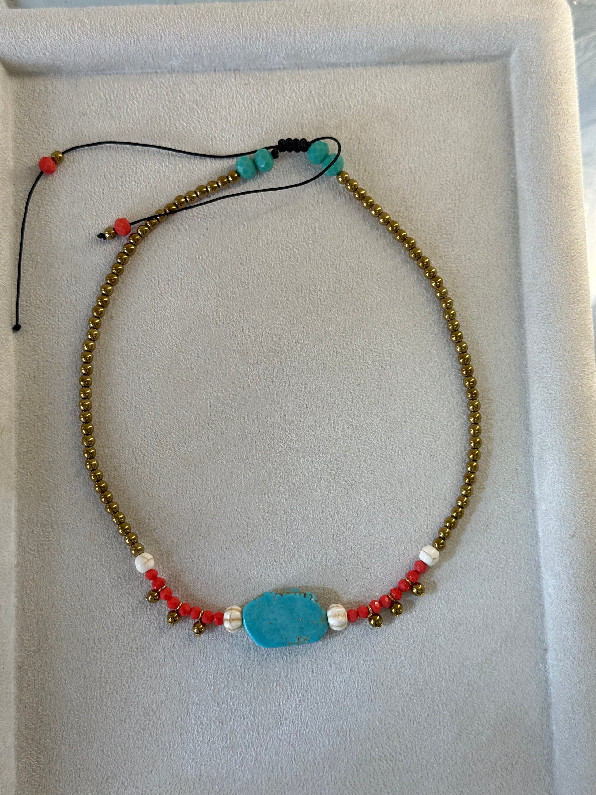 Ανακάλυψε το καλοκαιρινό κολιέ με αληθινές πέτρες και έντονο boho χαρακτήρα, σχεδιασμένο και κατασκευασμένο εξολοκλήρου από την Pnoe Studio. Ιδανικό για ξεχωριστές εμφανίσεις που συνδυάζουν φυσικά στοιχεία με χρυσές λεπτομέρειες.