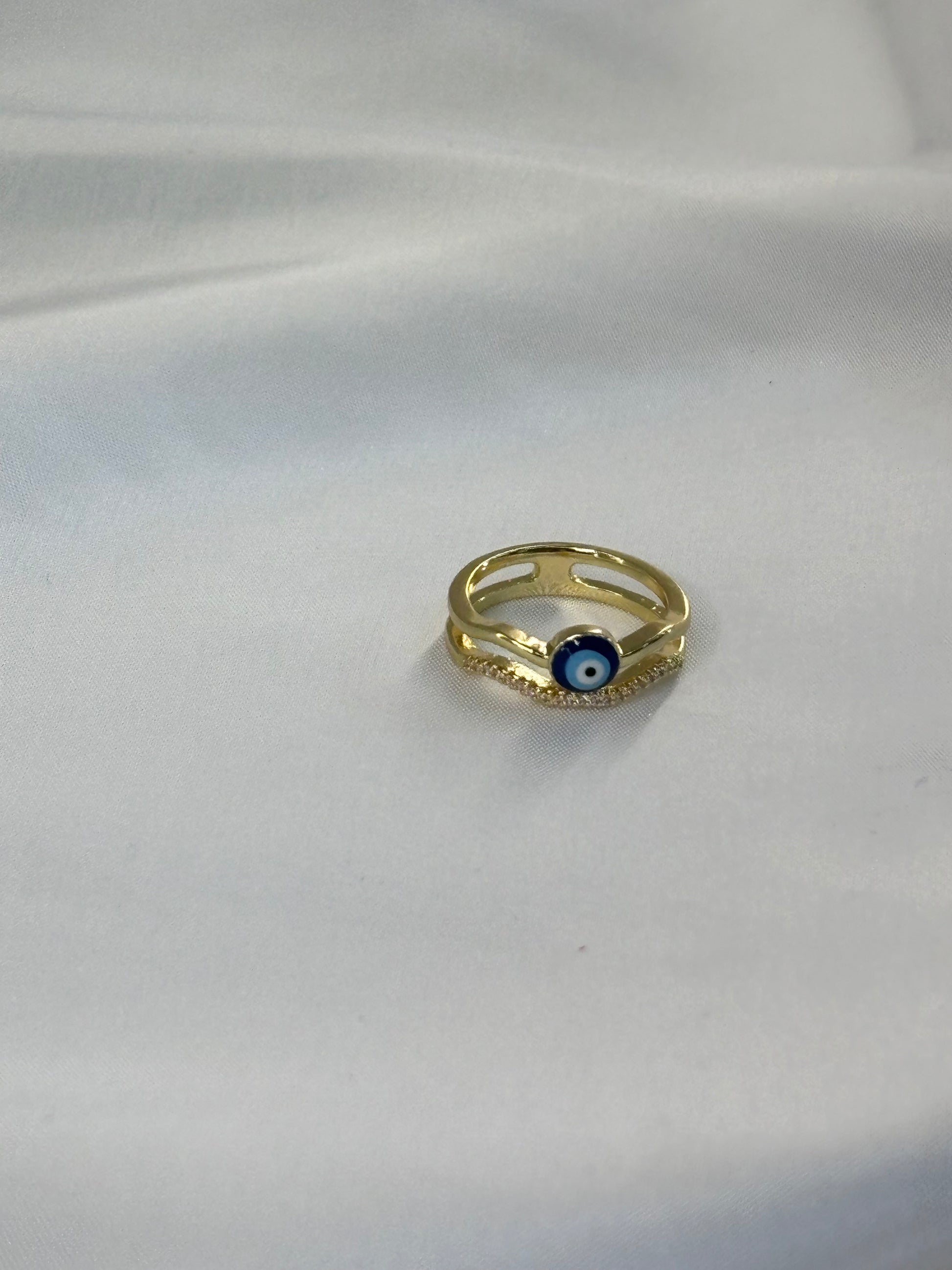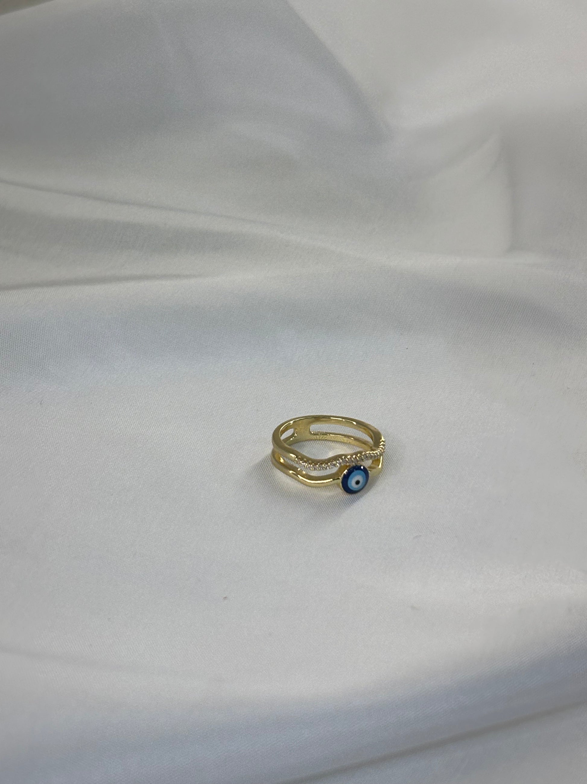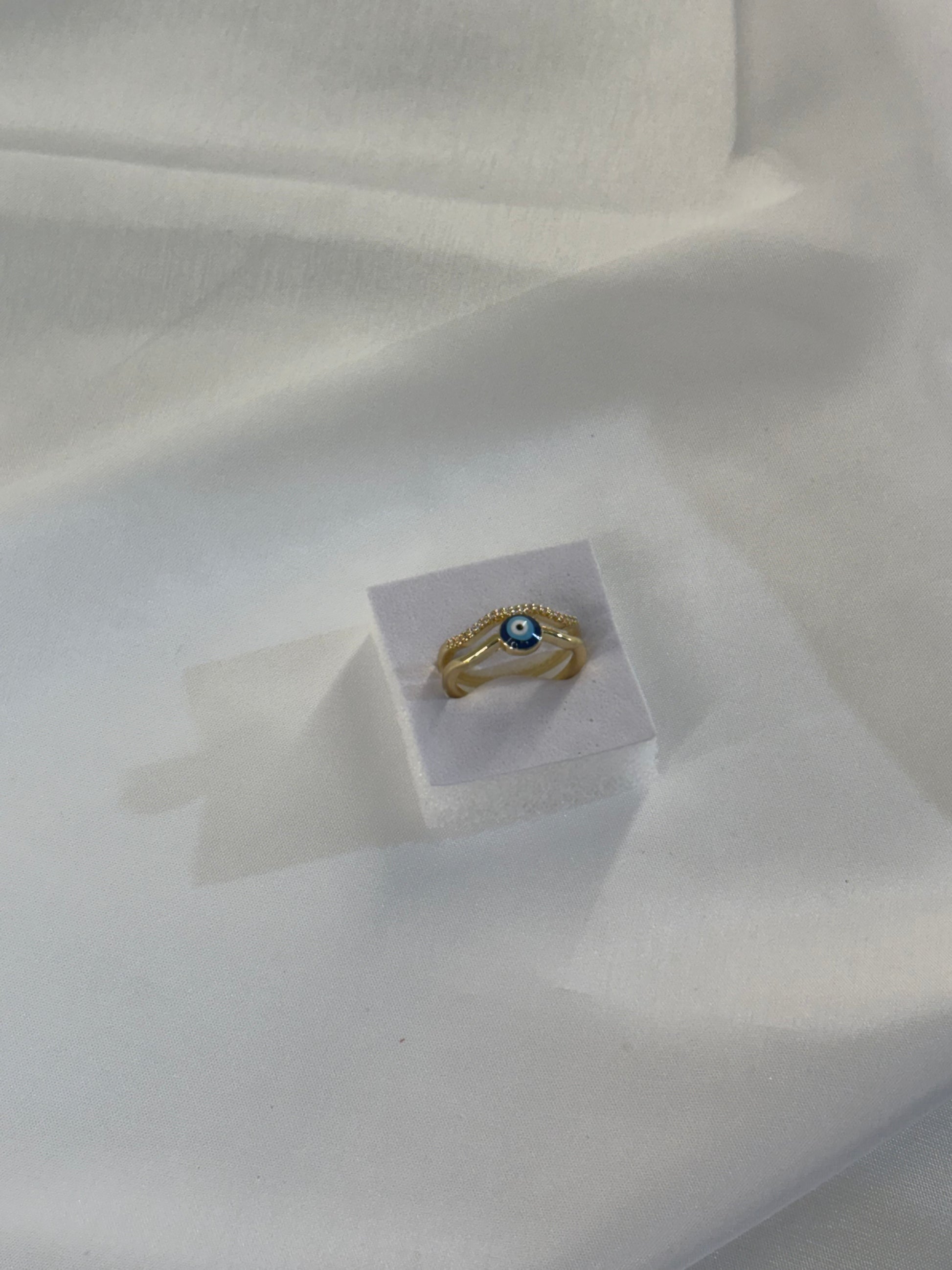 Γυναικείο Χρυσό Δαχτυλίδι με Ματάκι & Στρας | Pnoe Studio