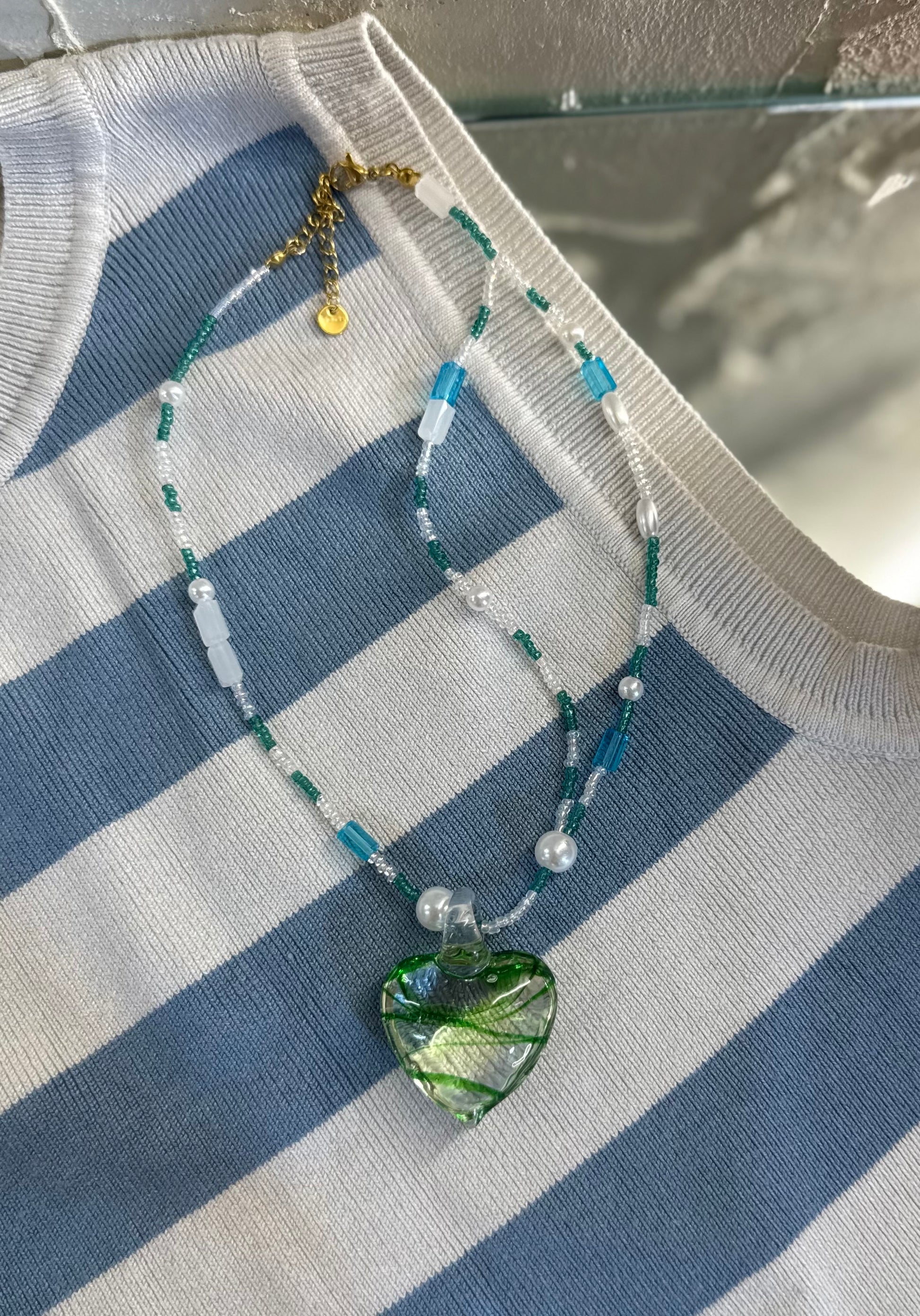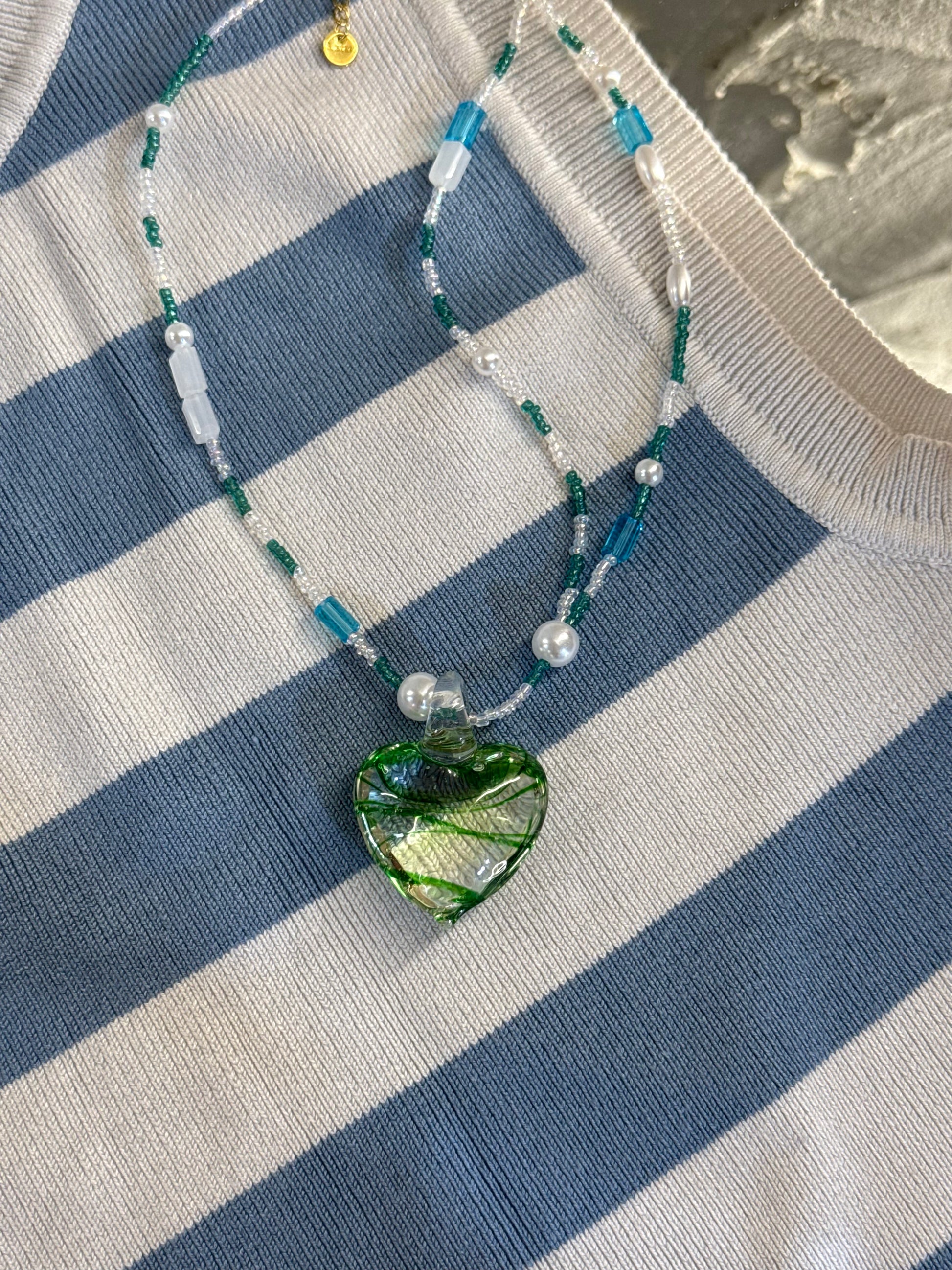Κολιέ Ατσάλινο Με Γυάλινο Στοιχείο ❤️✨
