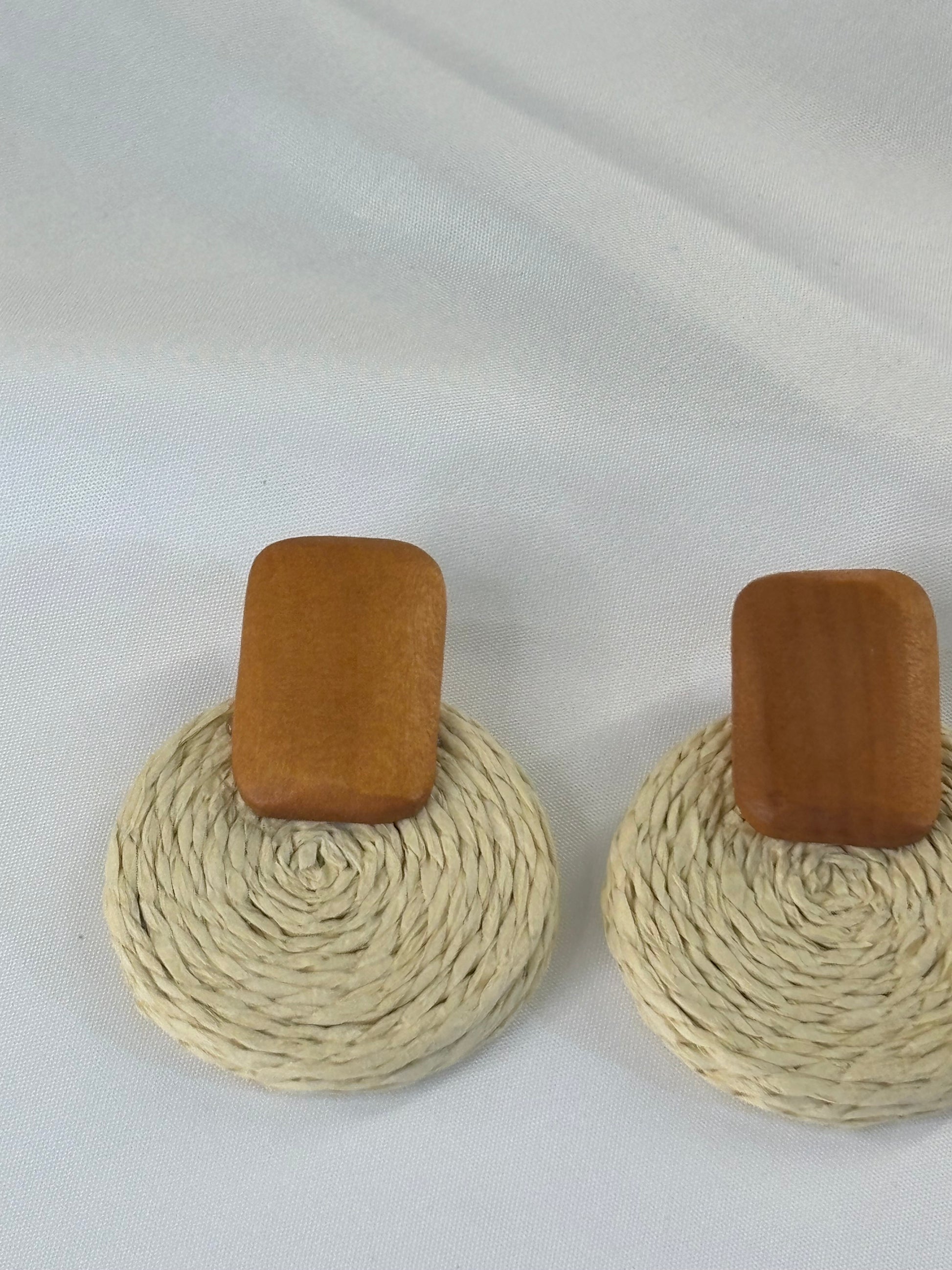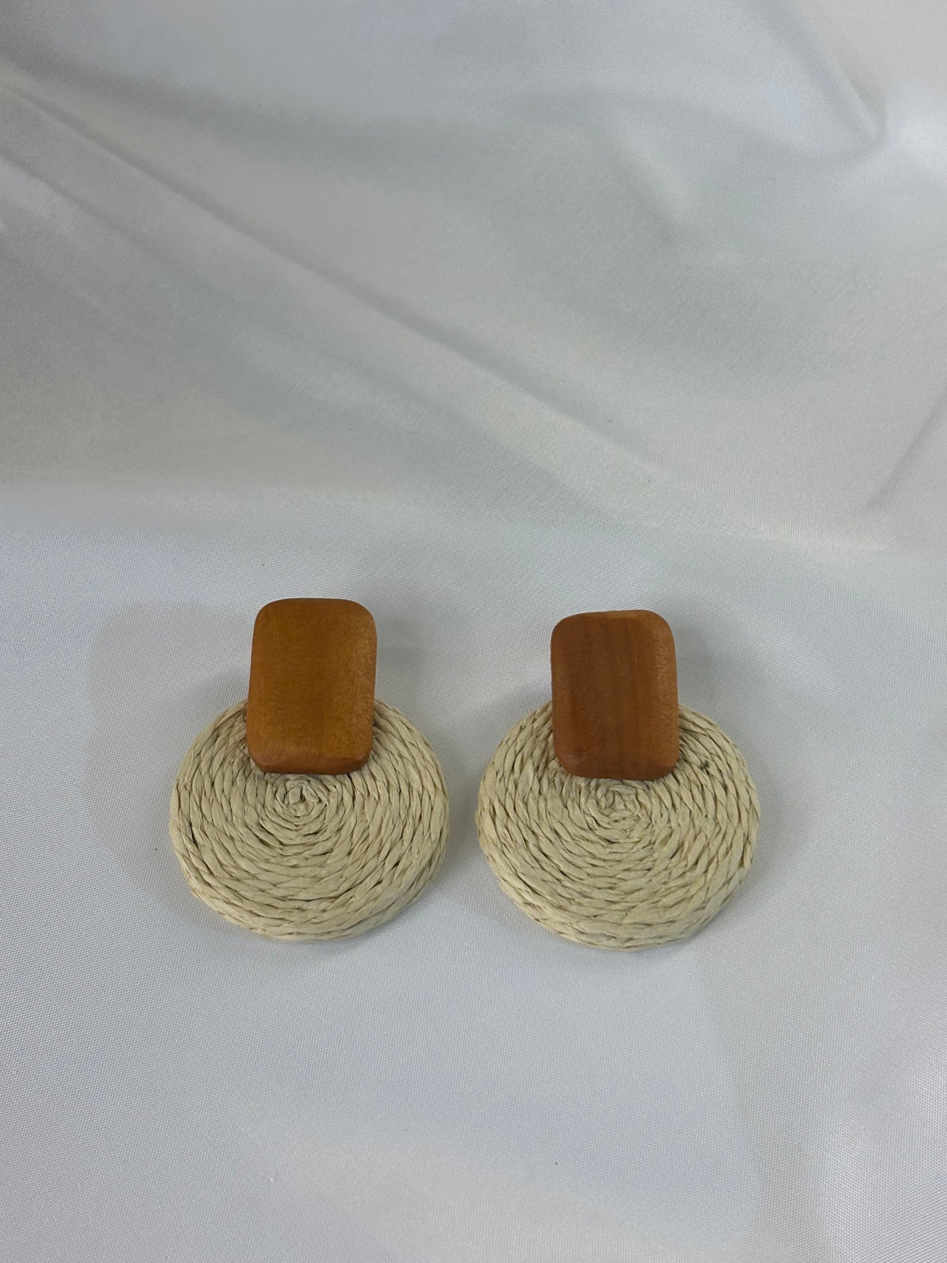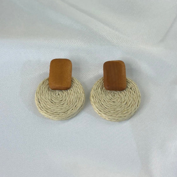 Γυναικεία Σκουλαρίκια Κρεμαστά Ξύλινα & Πλεκτά Εκρού | Pnoe Studio