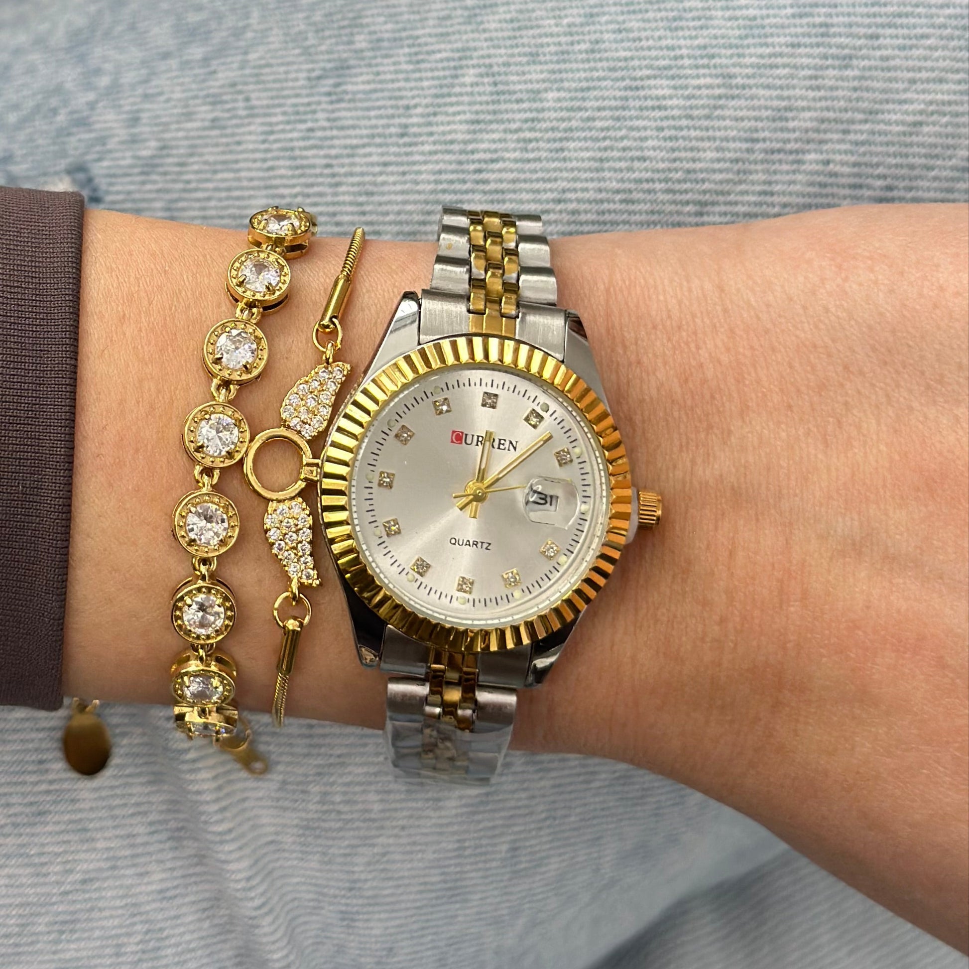 Γυναικείο Ρολόι με Άσπρο Στρογγυλό Καντράν και Χρυσό-Ασημί Λουρί | Κομψότητα και Αντοχή