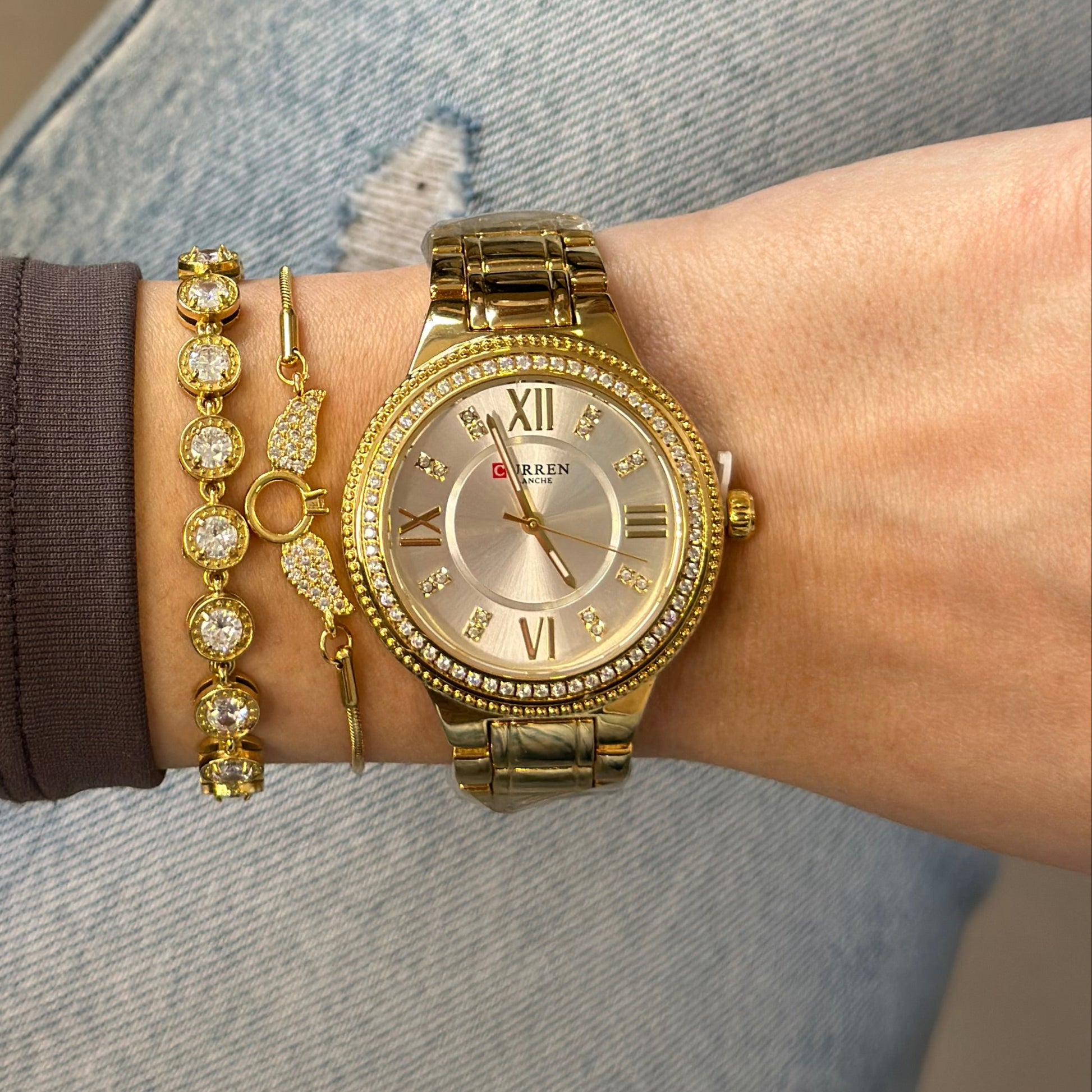 Γυναικείο Ρολόι "Gold" με Ασημί Καντράν και Χρυσό Λουρί | Κομψότητα και Ανθεκτικότητα