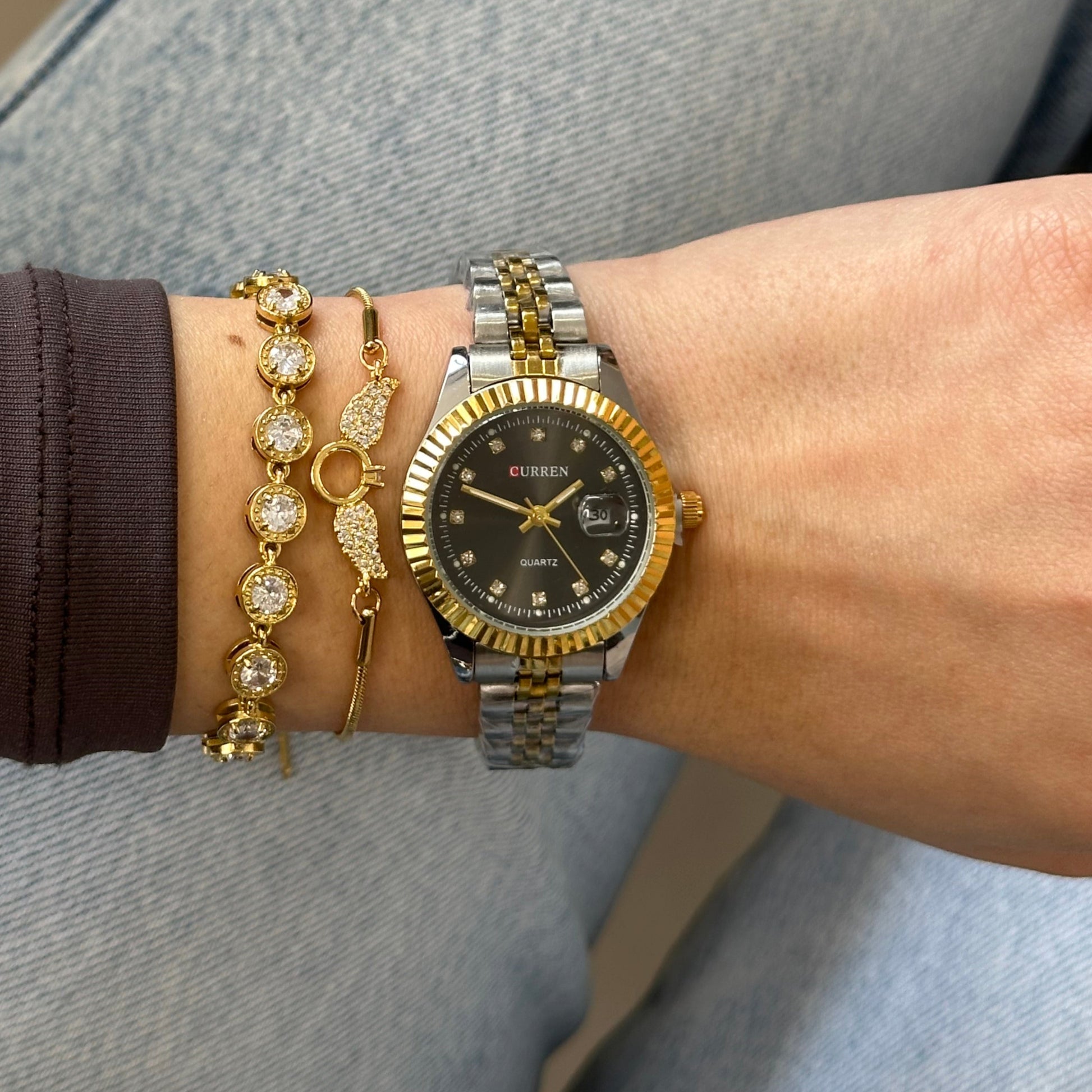 Ρολόι "Λυδία" με Μαύρο Καντράν και Χρυσό-Ασημί Λουρί | Ατσάλινη Κατασκευή
